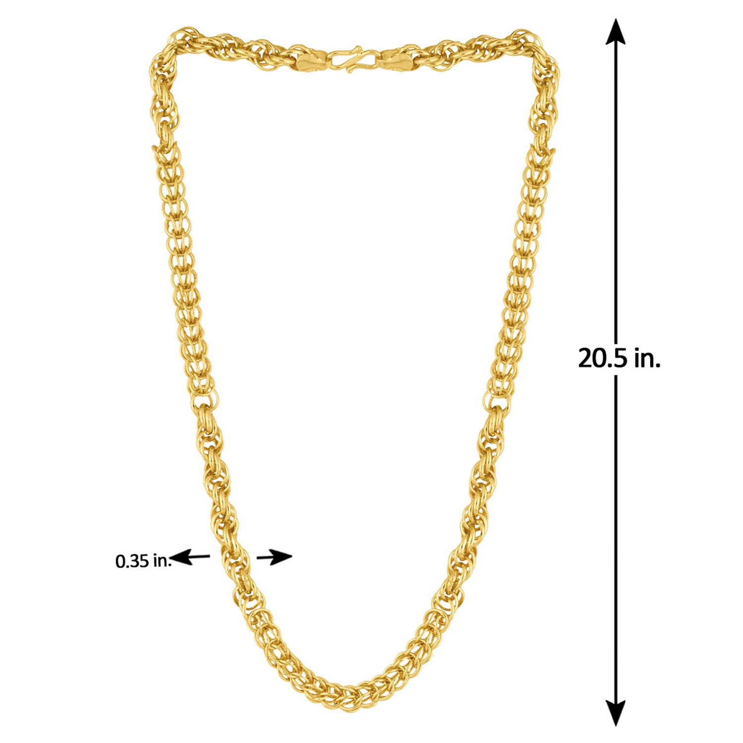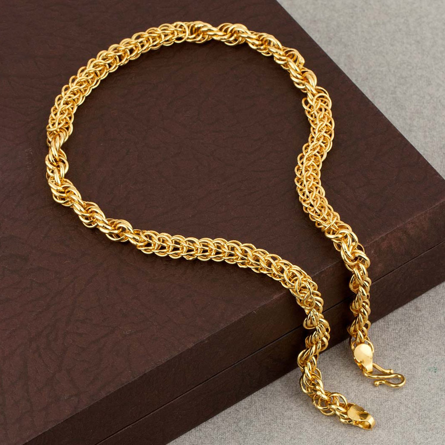 The Accessory: Give yourself a daring look with this gold-plated elegant box link chain from our Hand Made collection. How to wear it: Team it with a solid colour t-shirt and jeans.Own the Part: Perfect wear for outings with friends and family.To make your accessories last longer avoid harsh chemicals and moisture. Keep dry, clean with dry cloth and wear with panache."From the Dare by Voylla, India's largest fashion jewelry brand comes DARE, a line of handcrafted accessories for the modern Indian. man. |