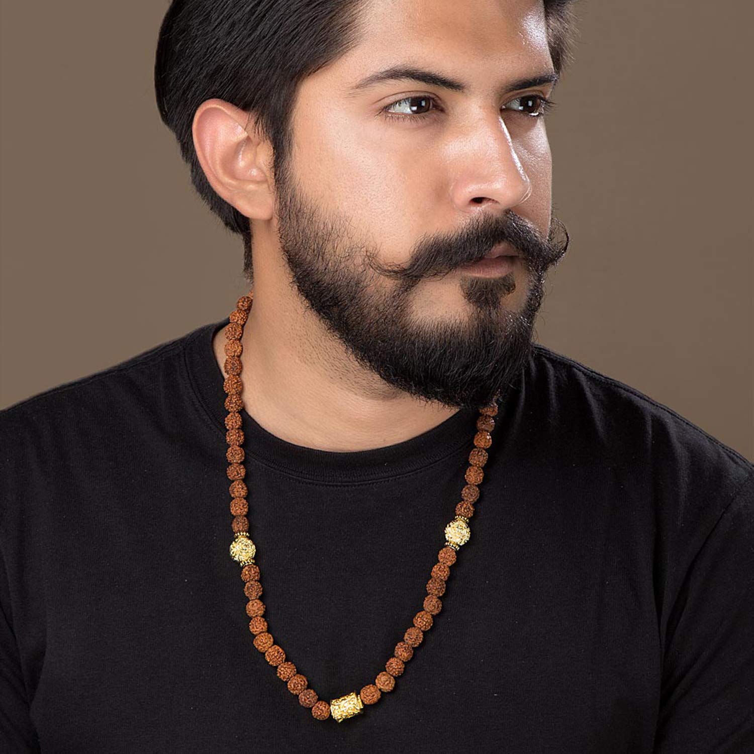 The Accessory: Keep Lord Shiva blessings close to you with this rudraksha Mahadev necklace.How to Wear it: Team it with a white kurta-pyjama or churidar.Own the Part: Wear the necklace for any occasion and seek the divine blessings.To make your accessories last longer avoid harsh chemicals and moisture. Keep dry, clean with dry cloth and wear with panache."From the Dare by Voylla, India's largest fashion jewelry brand comes DARE, a line of handcrafted accessories for the modern Indian. man. |
