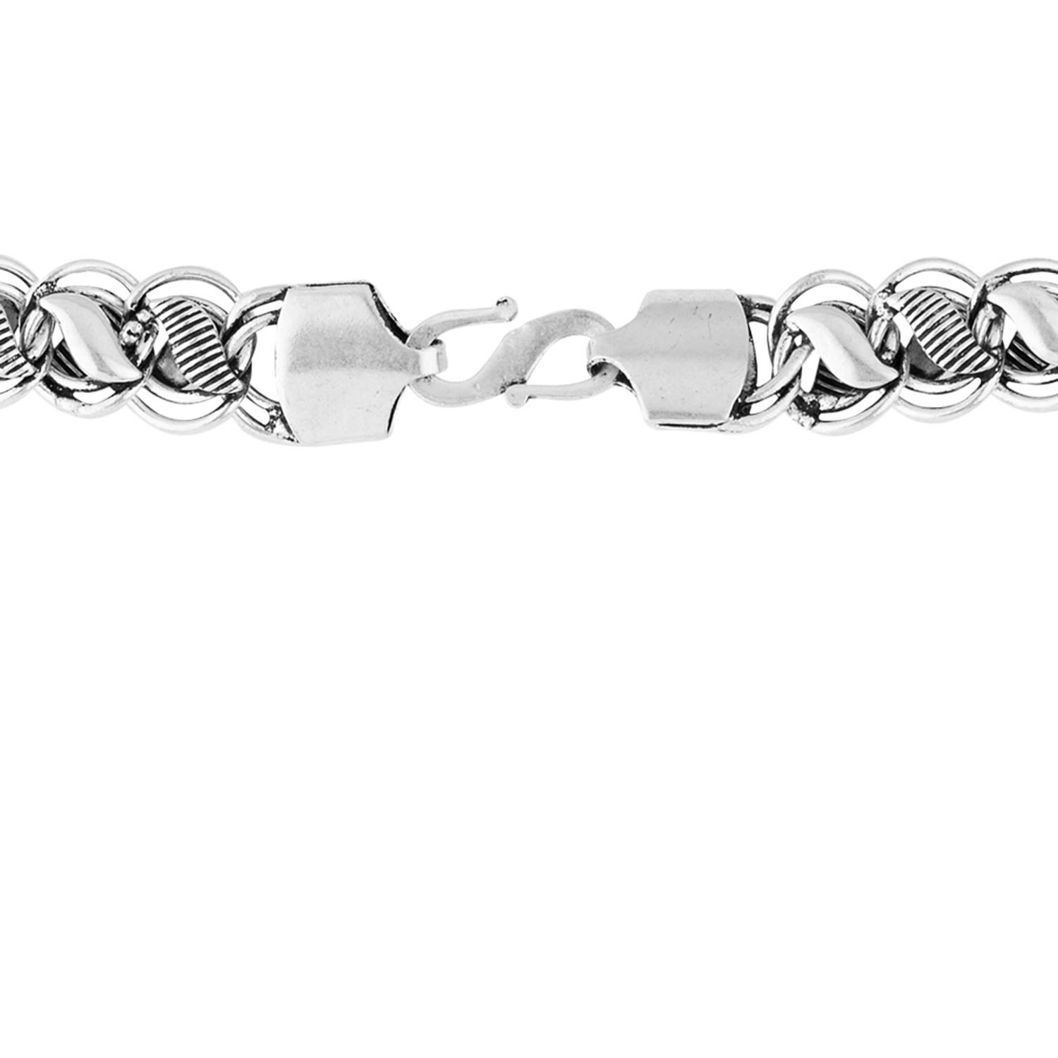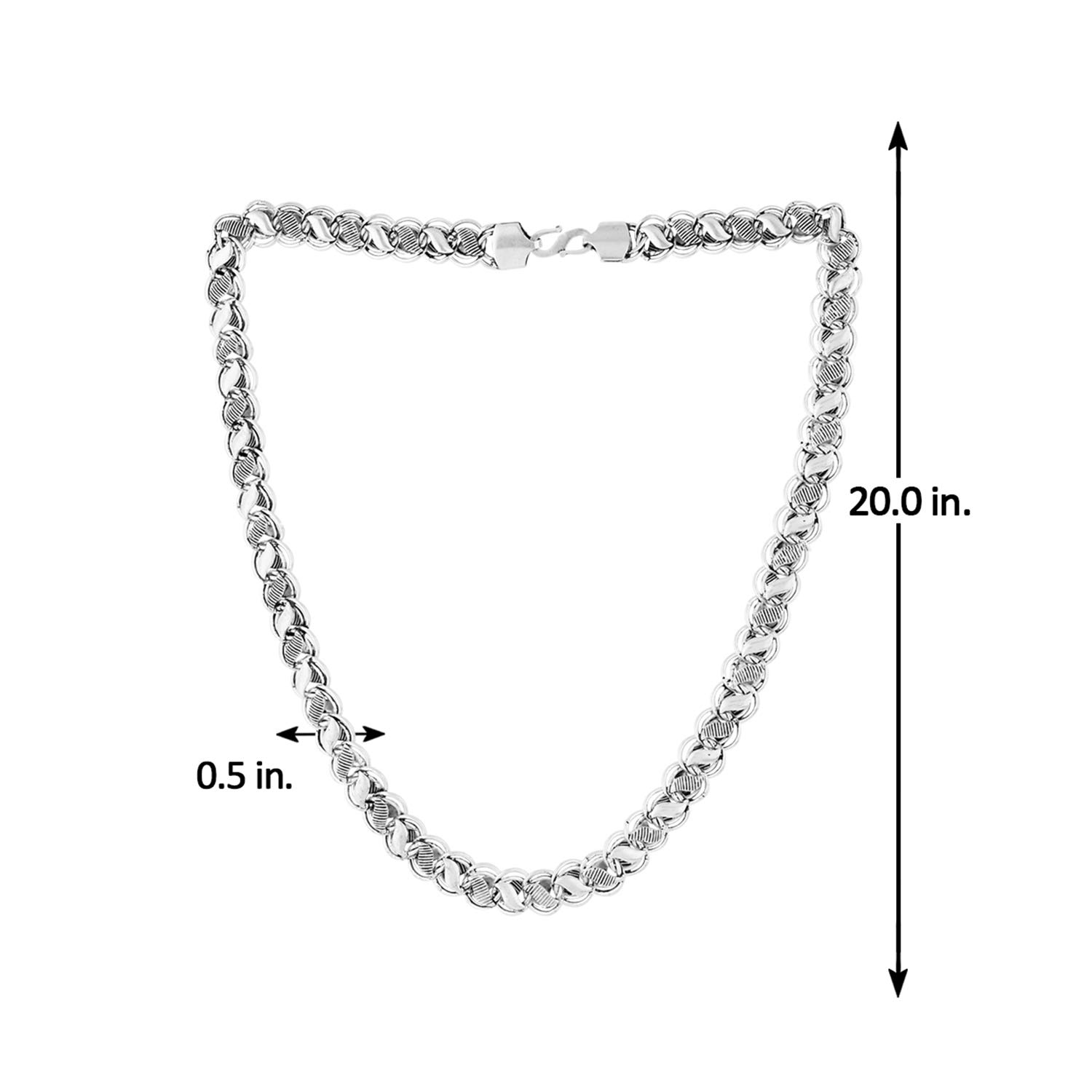 Crafted into a Cuban link pattern, the chain with lobster clasp closure has been fashioned out of brass. Oxidised silver plated and good for casual outings.To make your accessories last longer avoid harsh chemicals and moisture. Keep dry, clean with dry cloth and wear with panache. "India's largest fashion jewelry brand DARE, comes from the House of Voylla as a limited edition of handcrafted accessories for the modern Indian men. |