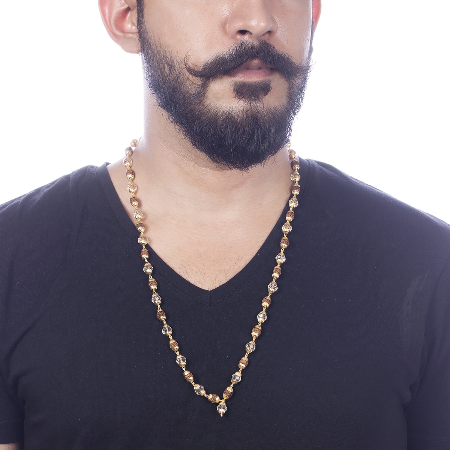 Make your neckline adorable, with this Rudraksha studded chain. Immaculately crafted, this chain features a classic design. Team this chain with your casual for a complete look. This piece of jewelry comes with the Voylla assurance of quality and durability. Caring for your fashion jewelry: We, at Voylla, take care of every piece of jewelry so that you don't spend hours caring for them. But do remember, fashion jewelry lasts longer when kept dry and free of chemicals. Follow this simple rule: Your jewelry should be the last thing you put on and the first thing you take off. |