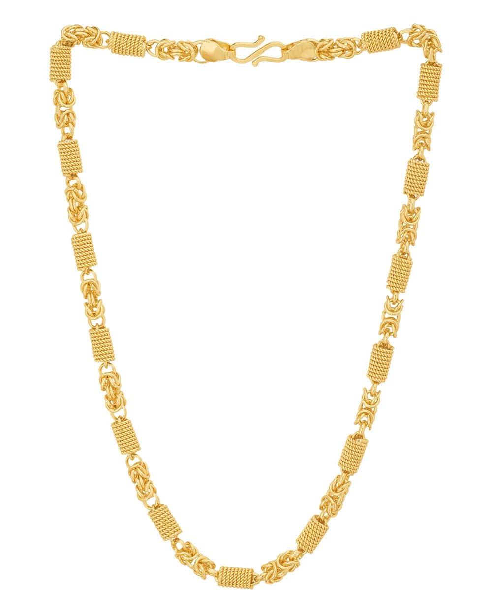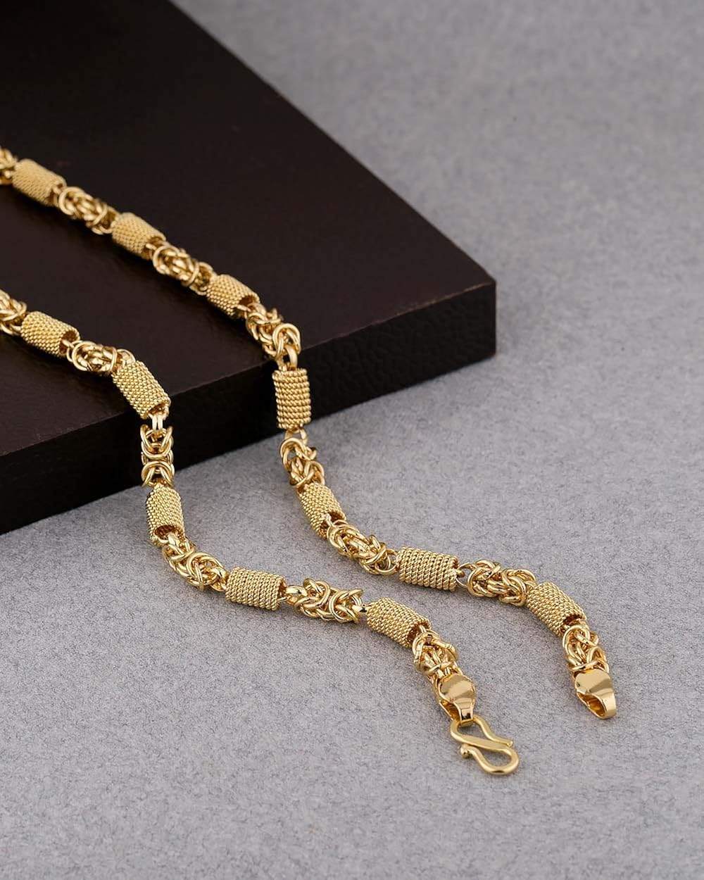 The Accessory: A sure head turner, this perfectly crafted gold plated designer link chain would give you a classic look and feel. How To Wear It: This gold link chain will complement all your formal and casual looks. Look The Part: This classy designer chain is a perfect wear for any formal or festive occasion. To make your accessories last longer avoid harsh chemicals and moisture. Keep dry, clean with dry cloth and wear with panache. "From the House of Voylla, India's largest fashion jewelry brand comes DARE, a line of handcrafted accessories for the modern Indian man. |