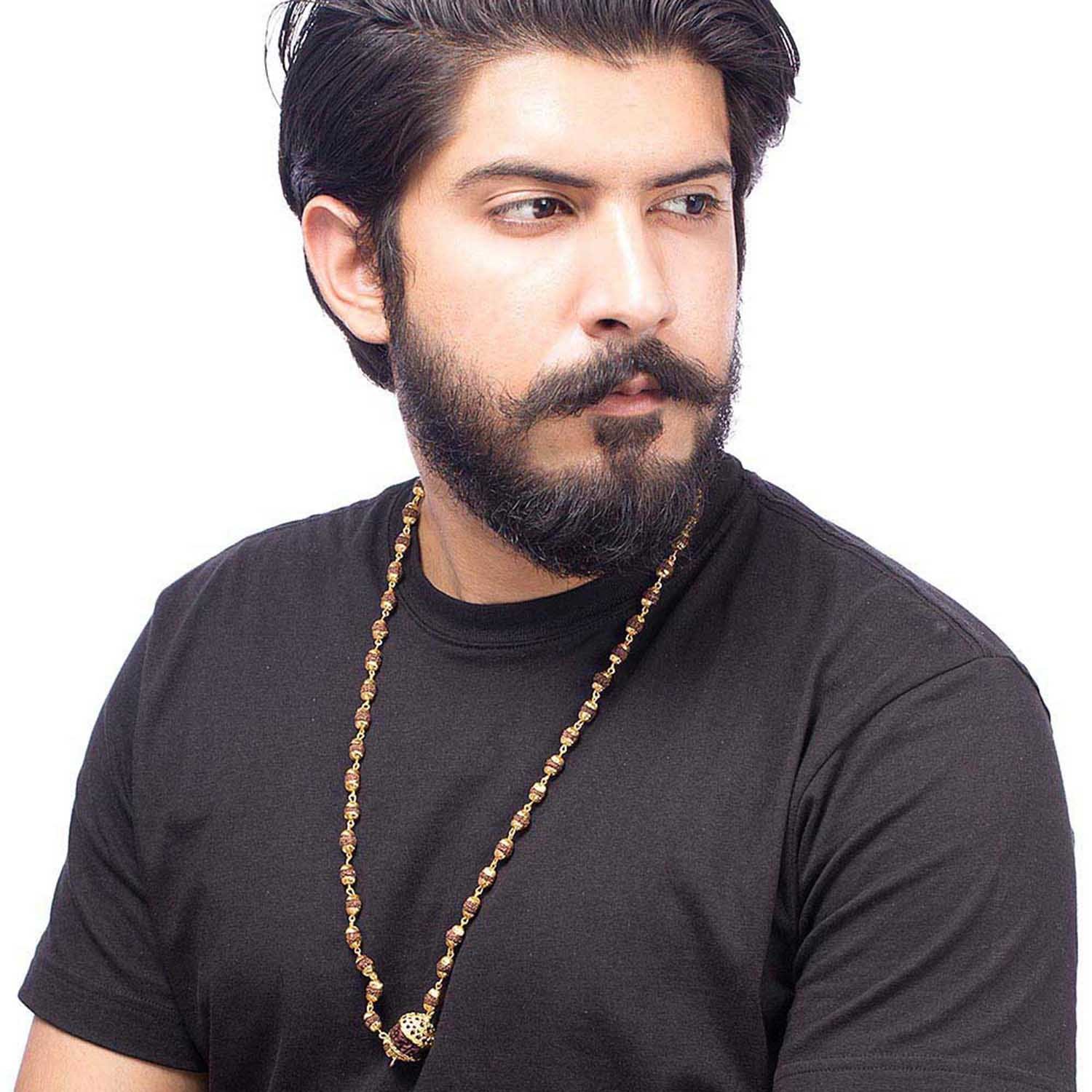 Give a divine look with style by wearing this classy chain, especially designed for men from Dare by Voylla. Embellished with Faux rudraksha studded chain and plated with yellow gold. Brass has been used in making this piece. To make your accessories last longer avoid harsh chemicals and moisture. Keep dry, clean with dry cloth and wear with panache. "From the House of Voylla, India's largest fashion jewelry brand comes DARE, a line of handcrafted accessories for the modern Indian man. |