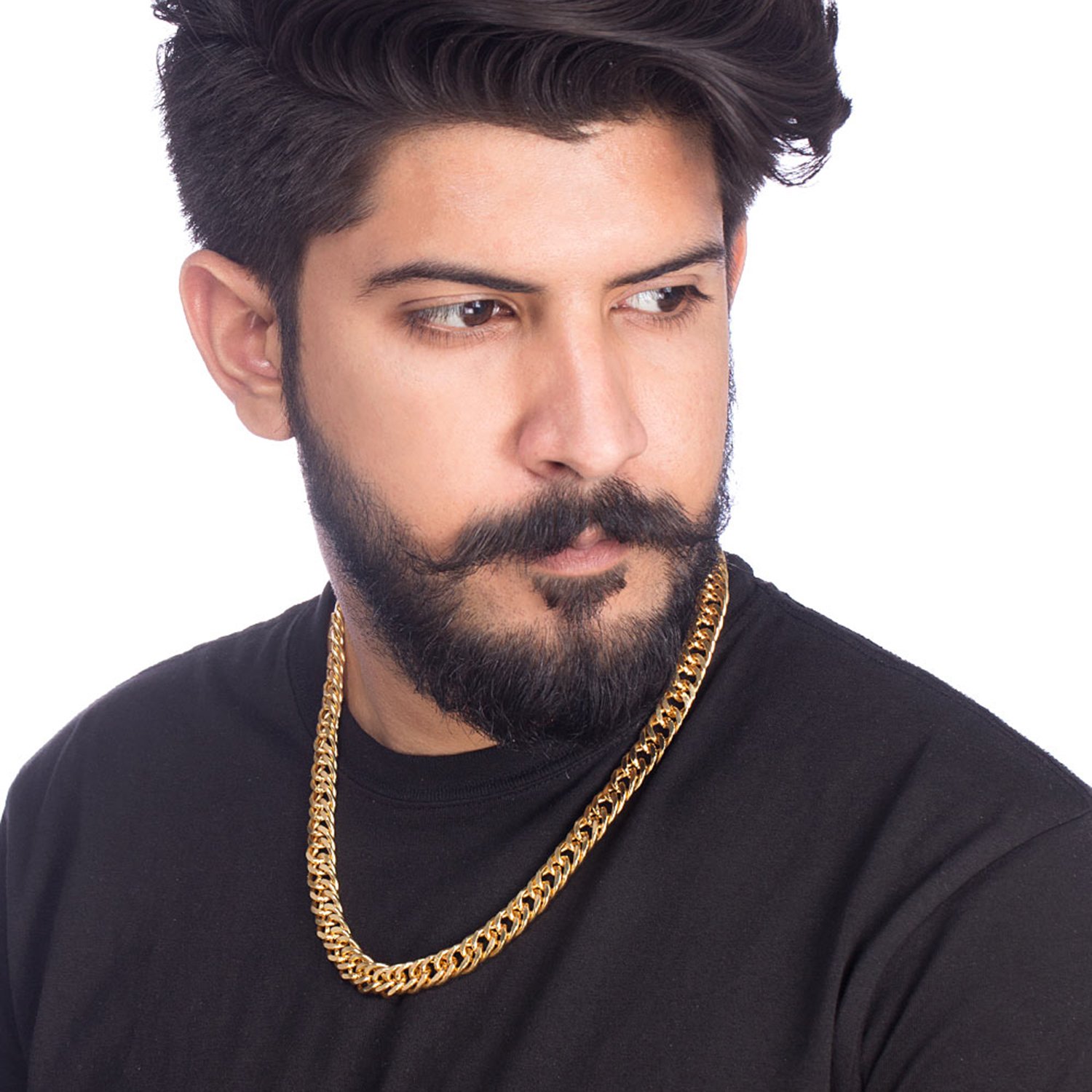The Accessory : Accentuate your look with the sleek and refined style of this gold plated curb link chain from golden links. How To Wear it: Pair the chain with any of your casual checks shirt and a jeans with boots. Own The Part: Wear it while going for a weekend hangout with your buddies, bikes and beers! To make your accessories last longer avoid harsh chemicals and moisture. Keep dry, clean with dry cloth and wear with panache. "From the House of Voylla, India's largest fashion jewelry brand comes DARE, a line of handcrafted accessories for the modern Indian man. |