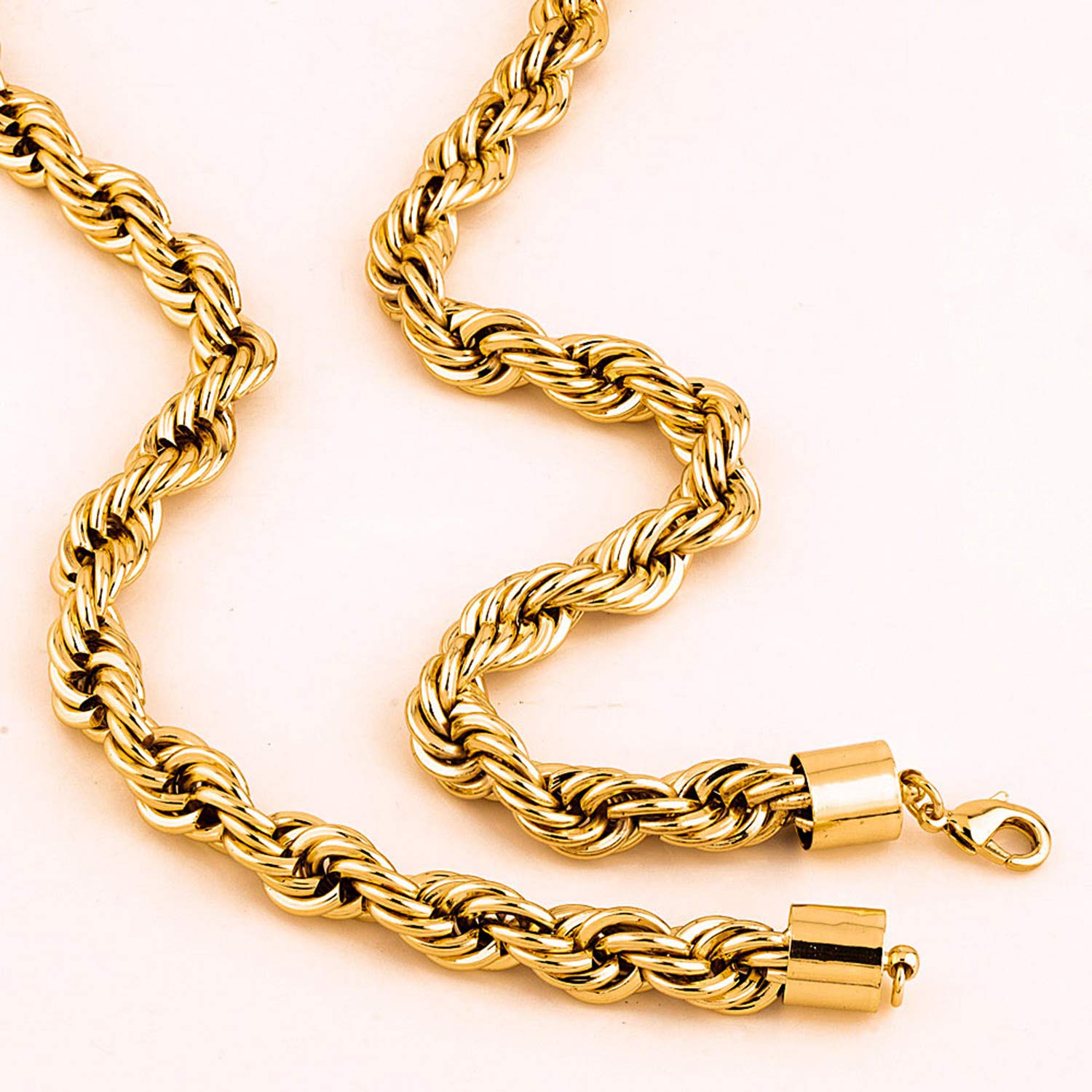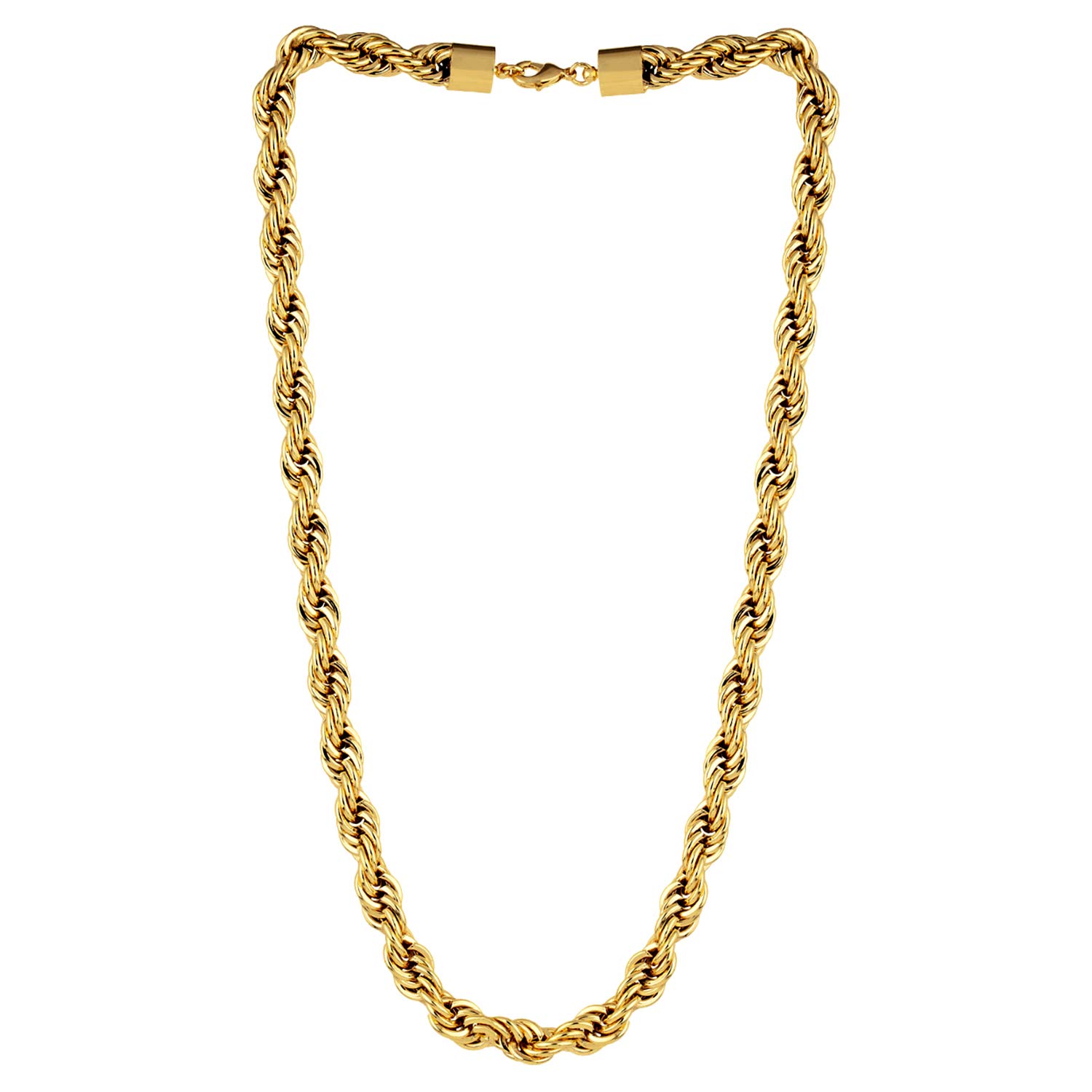 Rope chain for men made from stainless steel. Yellow gold plated and good for formal occasions. To make your accessories last longer avoid harsh chemicals and moisture. Keep dry, clean with dry cloth and wear with panache. "India's largest fashion jewelry brand DARE, comes from the House of Voylla as a limited edition of handcrafted accessories for the modern Indian men. |