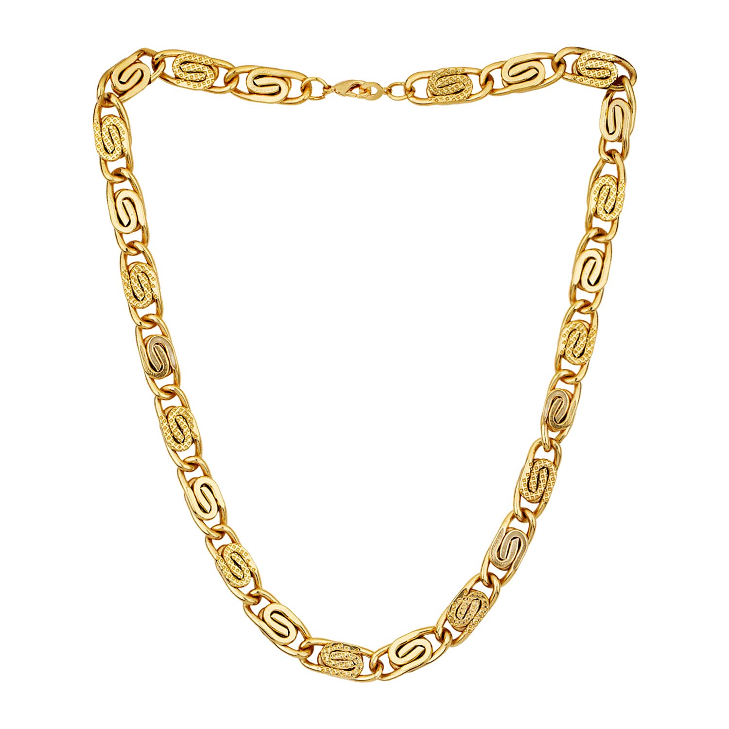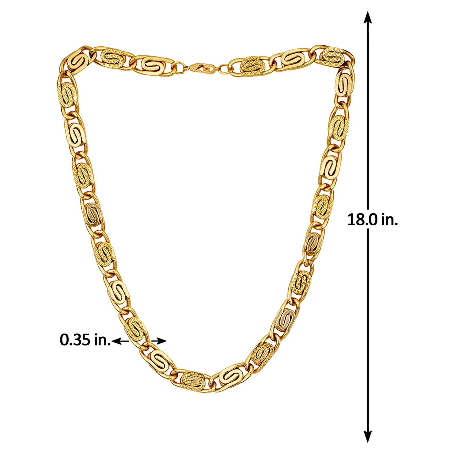 Box link design chain for men, crafted from stainless steel. Pair the yellow gold plated chain with a formal kurta. To make your accessories last longer avoid harsh chemicals and moisture. Keep dry, clean with dry cloth and wear with panache. "India's largest fashion jewelry brand DARE, comes from the House of Voylla as a limited edition of handcrafted accessories for the modern Indian men. |