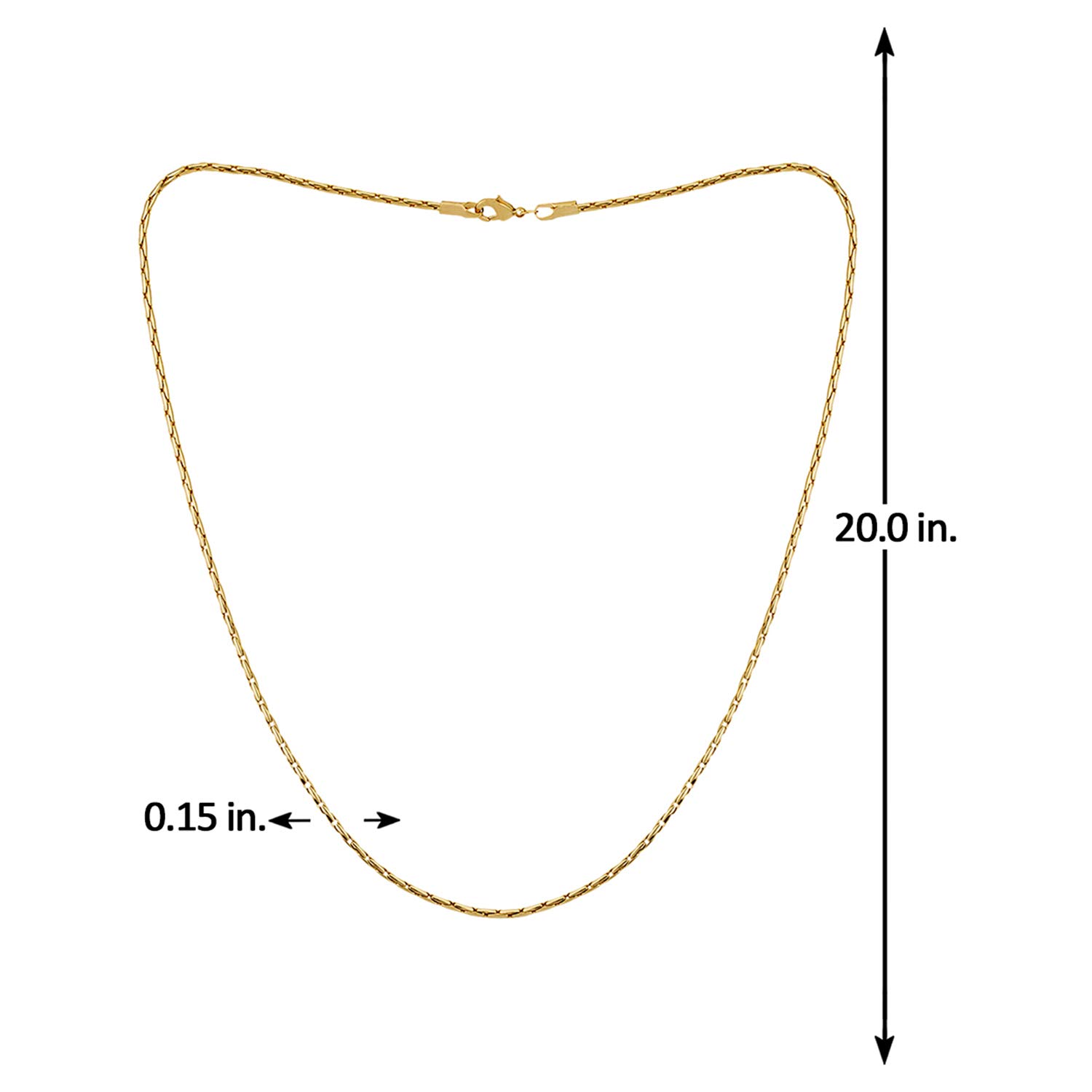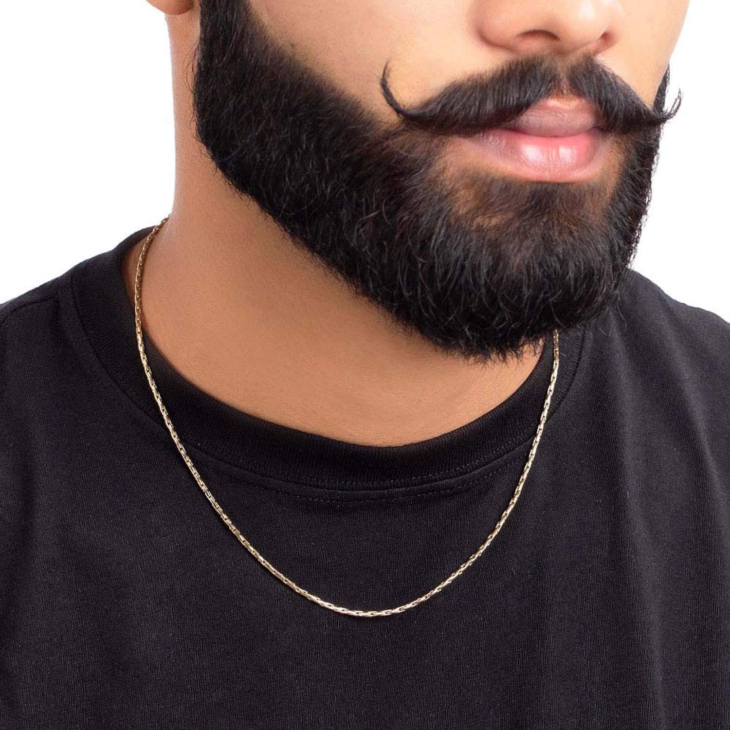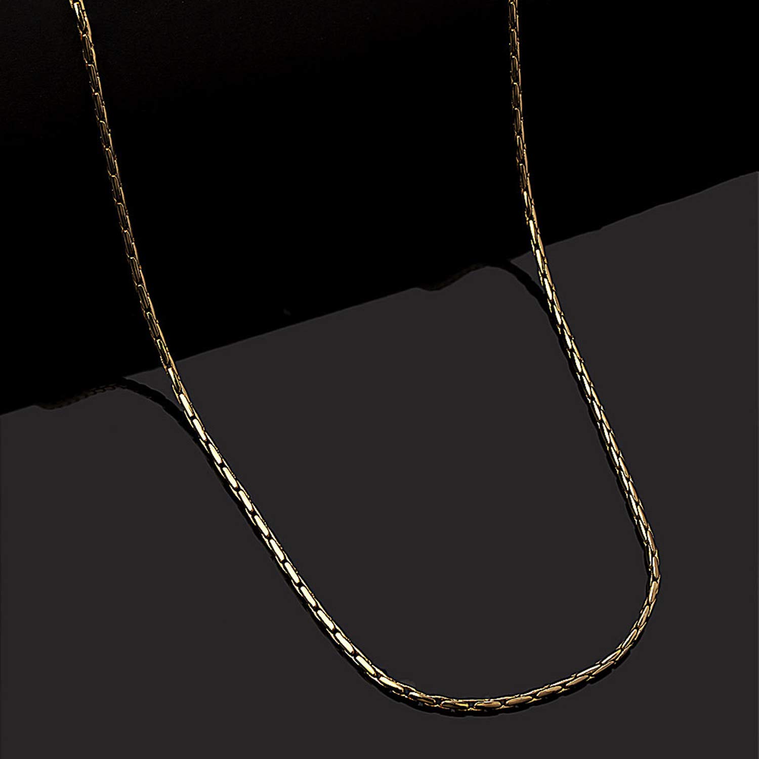 Men's link chain crafted out of stainless steel and yellow gold plated. Pair with a formal shirt. To make your accessories last longer avoid harsh chemicals and moisture. Keep dry, clean with dry cloth and wear with panache. "India's largest fashion jewelry brand DARE, comes from the House of Voylla as a limited edition of handcrafted accessories for the modern Indian men. |