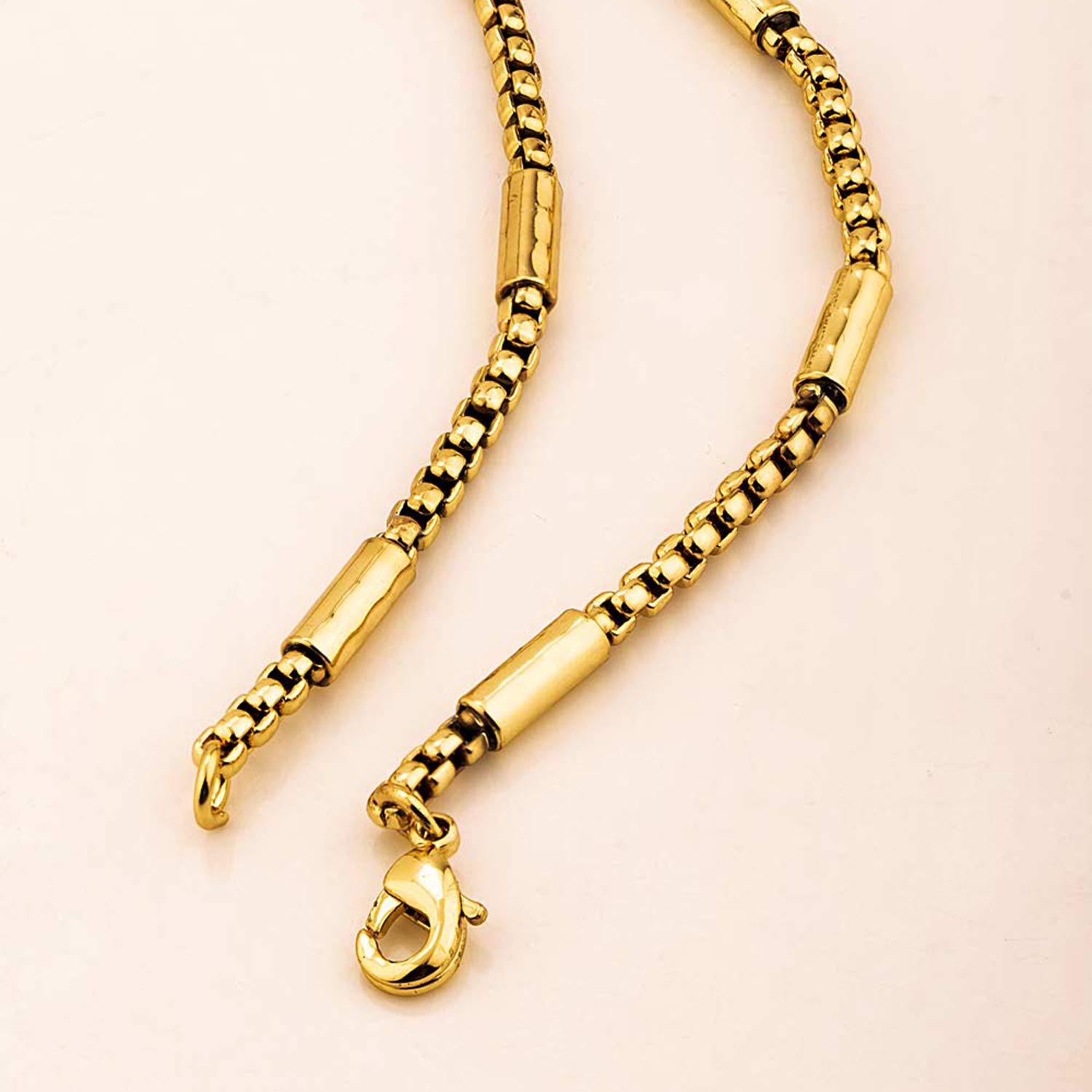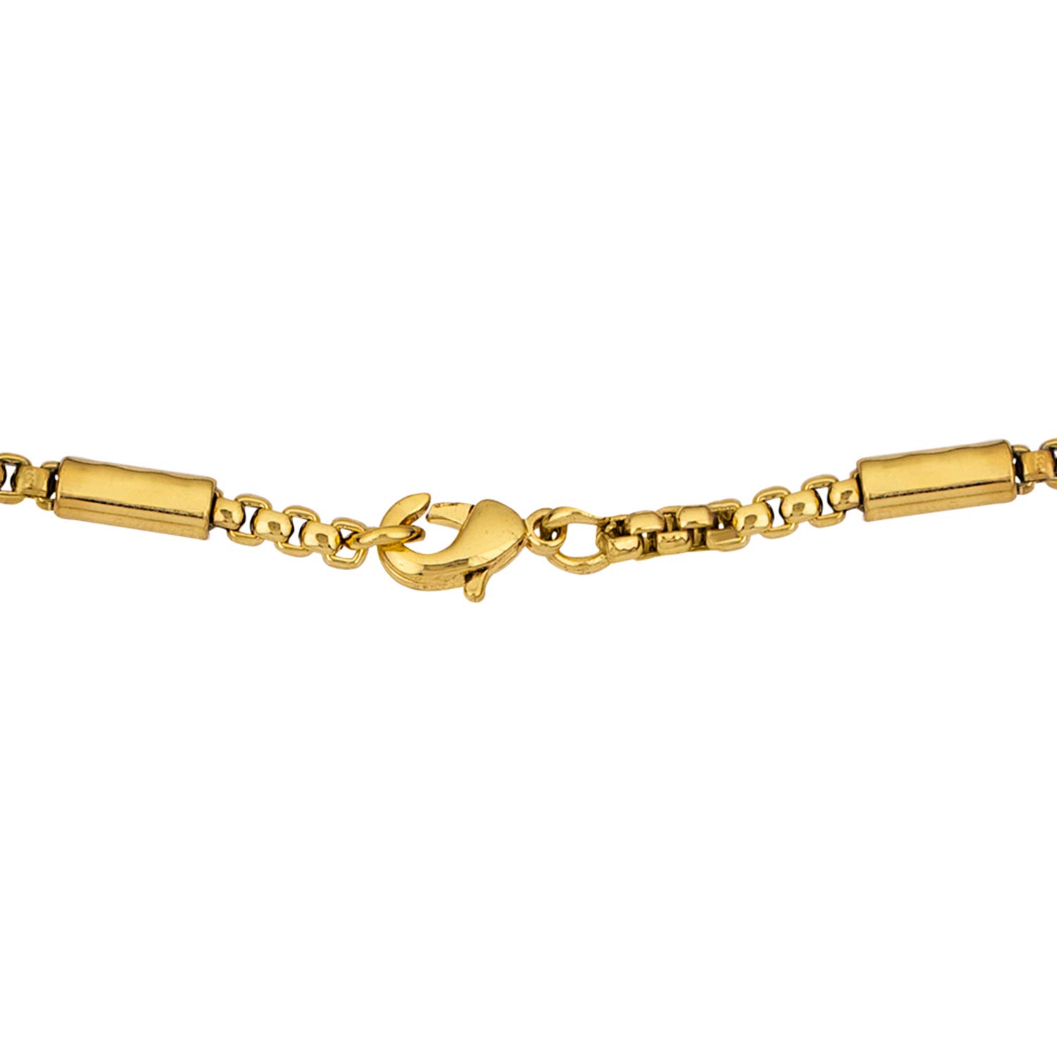 Stainless steel bracelet in a Byzantine pattern. Wear the yellow gold plated bracelet with a formal kurta. To make your accessories last longer avoid harsh chemicals and moisture. Keep dry, clean with dry cloth and wear with panache. "India's largest fashion jewelry brand DARE, comes from the House of Voylla as a limited edition of handcrafted accessories for the modern Indian men. |