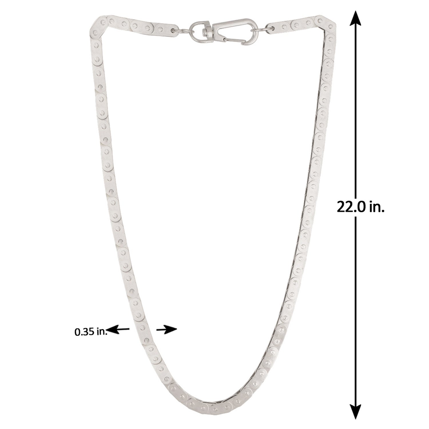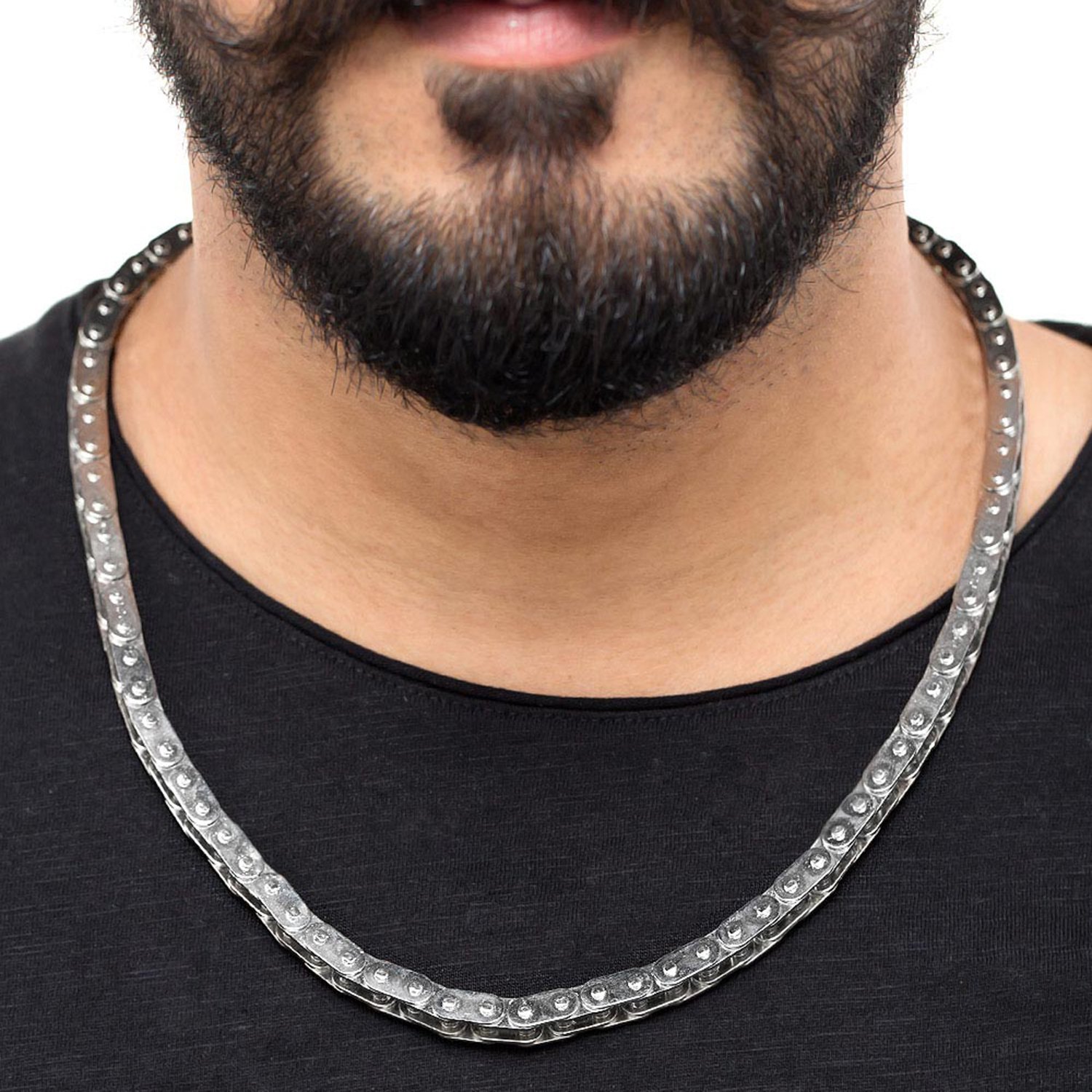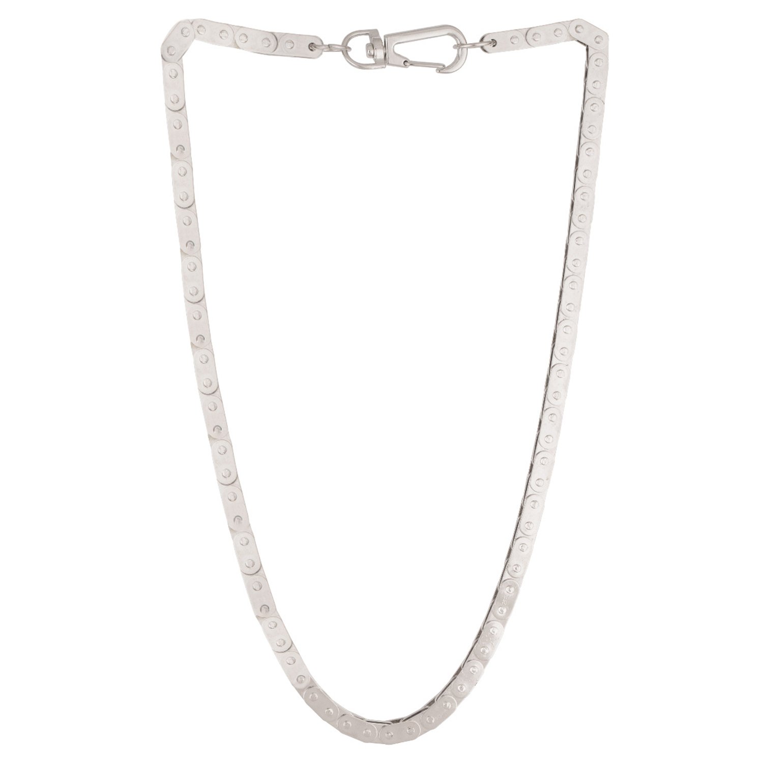 The Accessory: Unique dual toned silver-plated bike chain from our Motorcycle Diaries collection. How to Wear It: Looks best when worn with dark coloured t-shirts and shirts. Own the Part: Suits both casual and formal occasions. To make your accessories last longer avoid harsh chemicals and moisture. Keep dry, clean with dry cloth and wear with panache. "From the Dare by Voylla, India's largest fashion jewelry brand comes DARE, a line of handcrafted accessories for the modern Indian man. |