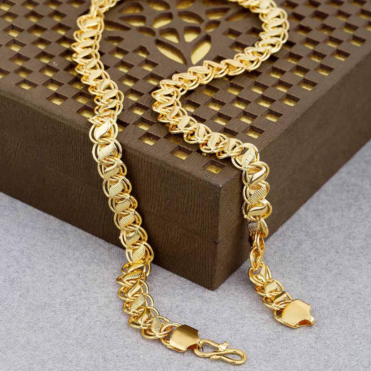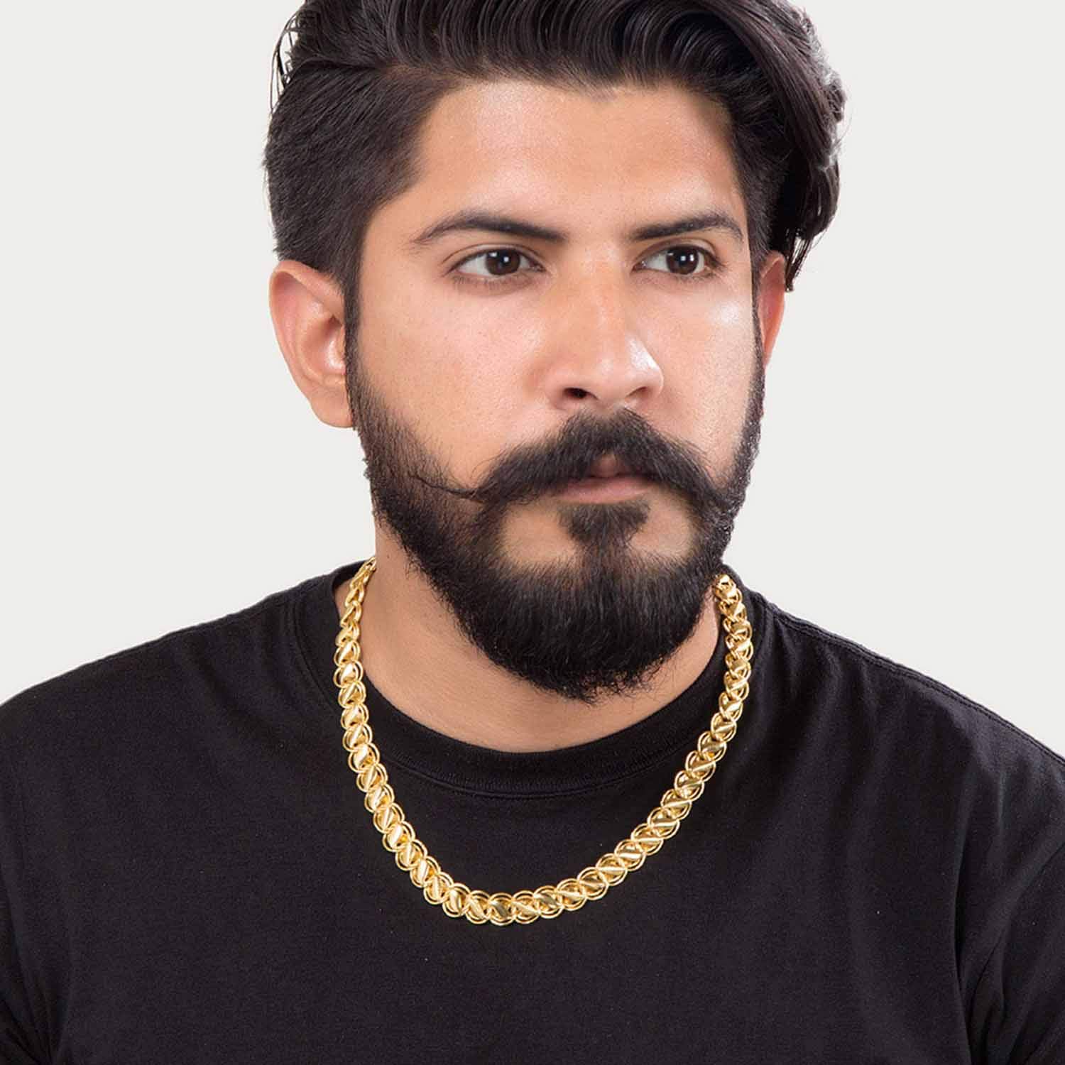 The Accessory: This stylish and versatile Linking Laureate gold-plated chain is sure to attract the attention and start a conversation. How to wear it: Wear it with a cool black t-shirt, jeans and boots. Own the Part: This chain is just ideal for parties and casual outings. To make your accessories last longer avoid harsh chemicals and moisture. Keep dry, clean with dry cloth and wear with panache. "From the DARE by Voylla, Indiaâ€TMs largest fashion jewelry brand comes DARE, a line of handcrafted accessories for the modern Indian man. |