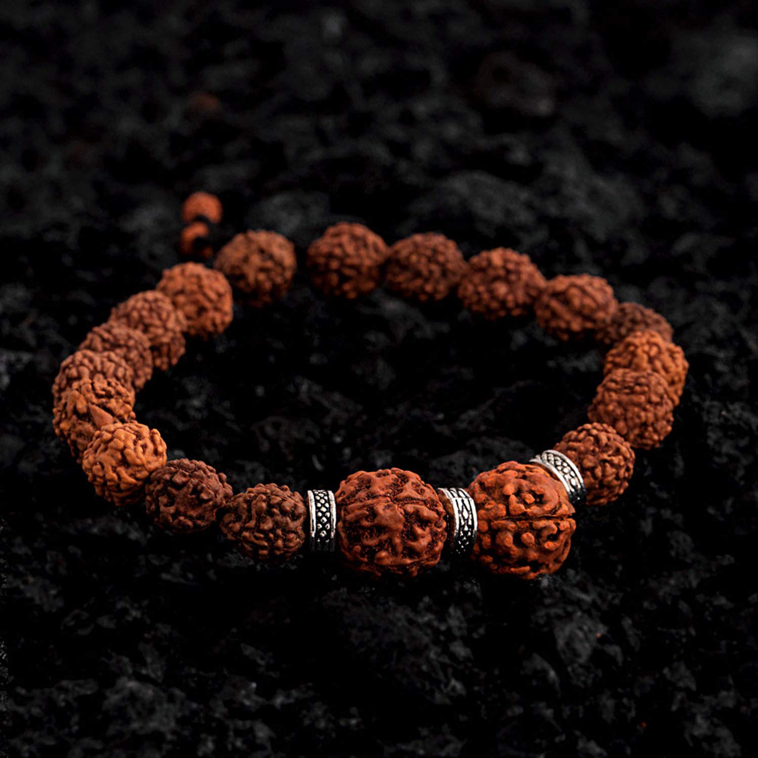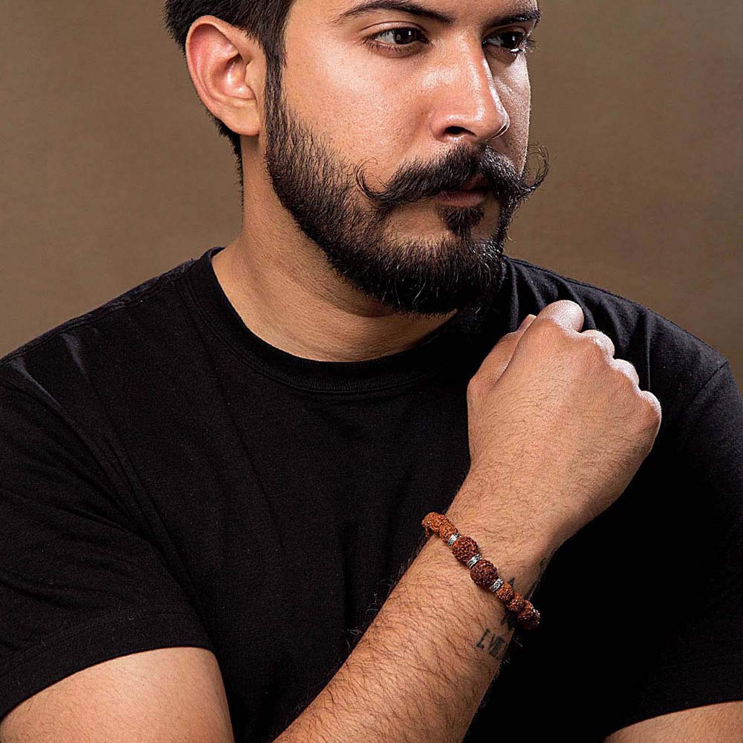 The Accessory: This sleek Mahadev bracelet has a single rudraksha beaded string and three oxidized silver-plated rings. How to wear it: Looks best with a kurta-pyjama or casual outfits. Own the Part: Can be worn for festive celebrations and outings with family and friends. To make your accessories last longer avoid harsh chemicals and moisture. Keep dry, clean with dry cloth and wear with panache. "From the Dare by Voylla, Indiaâ€TMs largest fashion jewelry brand comes DARE, a line of handcrafted accessories for the modern Indian man. |