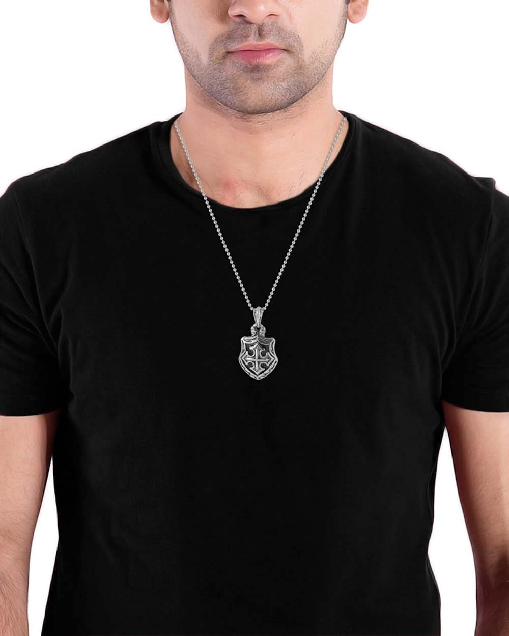 Visit our store: http://www.amazon.in/l/3928470031 ,Description: A must have fashion accessory for all men. This stunning pendant features sophisticated shield design with classy oxidized silver tone. Make it yours right away! |