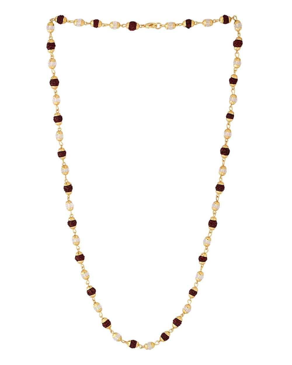 Description: Look distinctive and fashionably advanced with this Rudraksha beads chain that showcases modern appeal. This gold tone, stunning chain is studded with white crystal s. Featuring unique design. Which makes it stylish that you can pair it with any of your outfits for the glorious look. This piece of jewelry comes with the Voylla assurance of quality and durability. Caring for your fashion jewelry: We, at Voylla, take care of every piece of jewelry so that you don't spend hours caring for them. But do remember, fashion jewelry lasts longer when kept dry and free of chemicals. Follow this simple rule: Your jewelry should be the last thing you put on and the first thing you take off. |