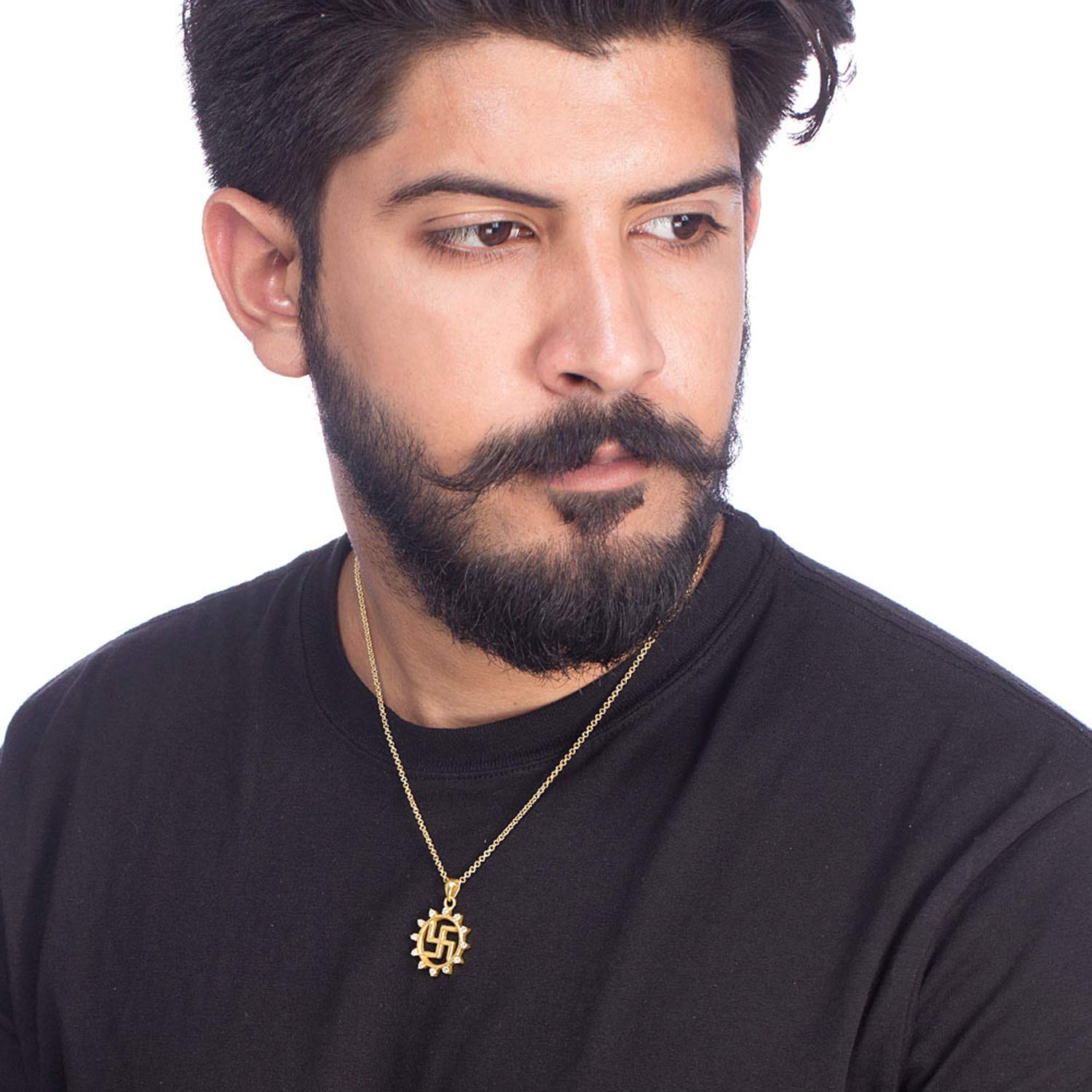 The accessory: a sacred star swastika pendant from our spiritual saga collection. how to wear it: pair the pendant with casual apparels. a plain v-neck t-shirt with a regular jeans. own the part: perfect for daily wear and auspicious occasions. to make your accessories last longer avoid harsh chemicals and moisture. keep dry, clean with dry cloth and wear with panache. "india's largest fashion jewelry brand dare, comes from the house of voylla as a limited edition of handcrafted accessories for the modern indian men. |