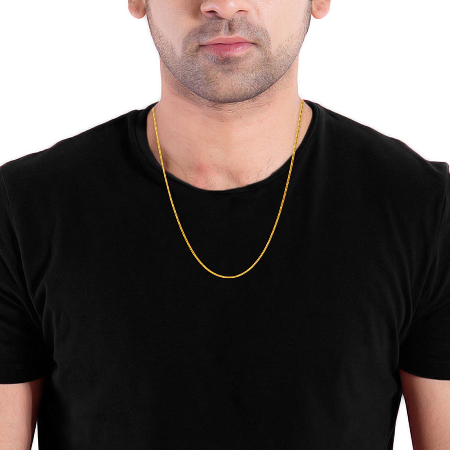 This sleek thin golden chain will add a touch of class to your look and its subtle style look will elevate your fashion quotient. This can be casually worn all day long with any attire. |