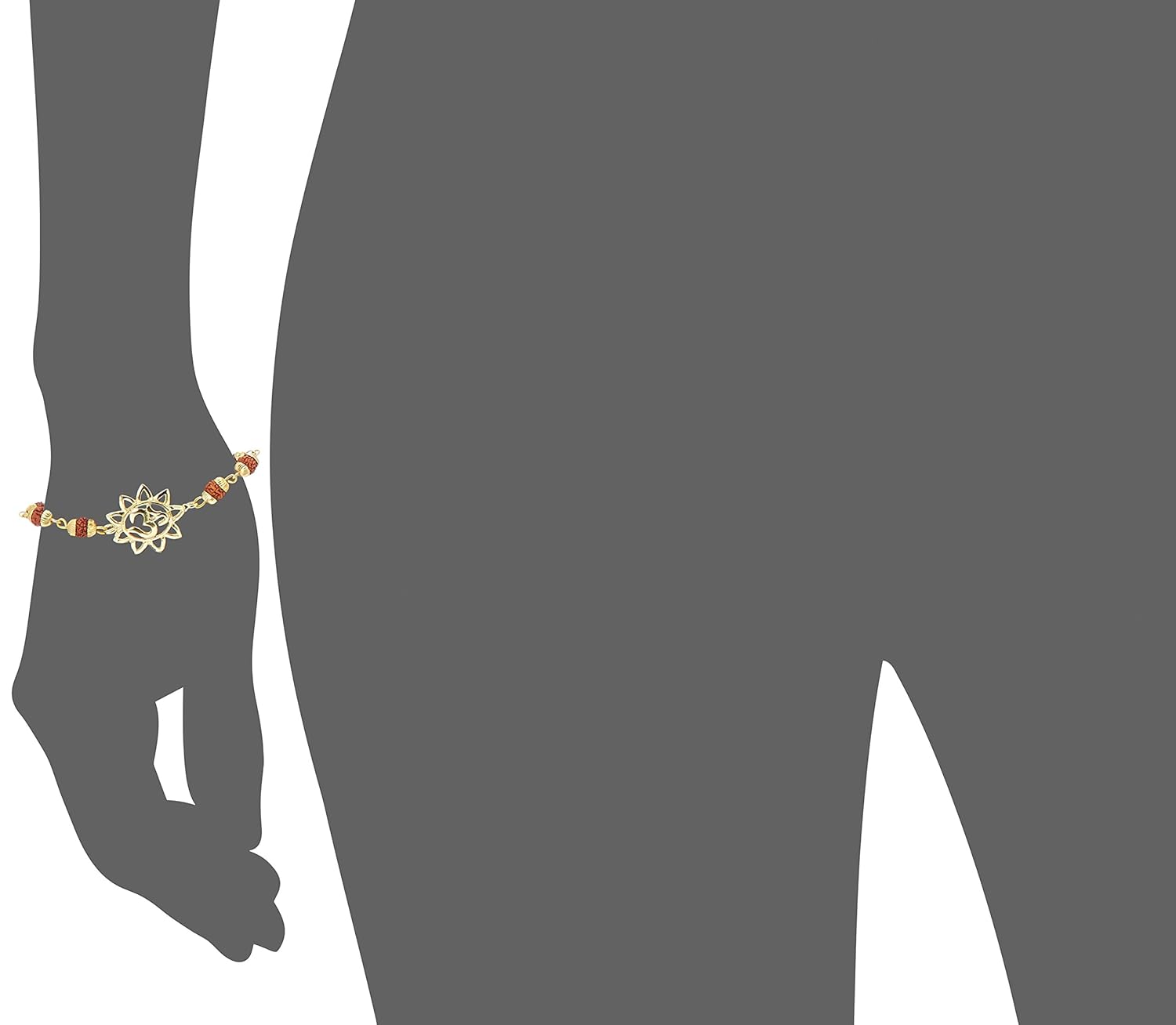 Finely polished in lustrous gold tone, this classy bracelet features rudraksha set against lovely floral design. No doubt, this piece will enhance the style of your hands when you adorn it. This piece of jewelry comes with the Voylla assurance of quality. |