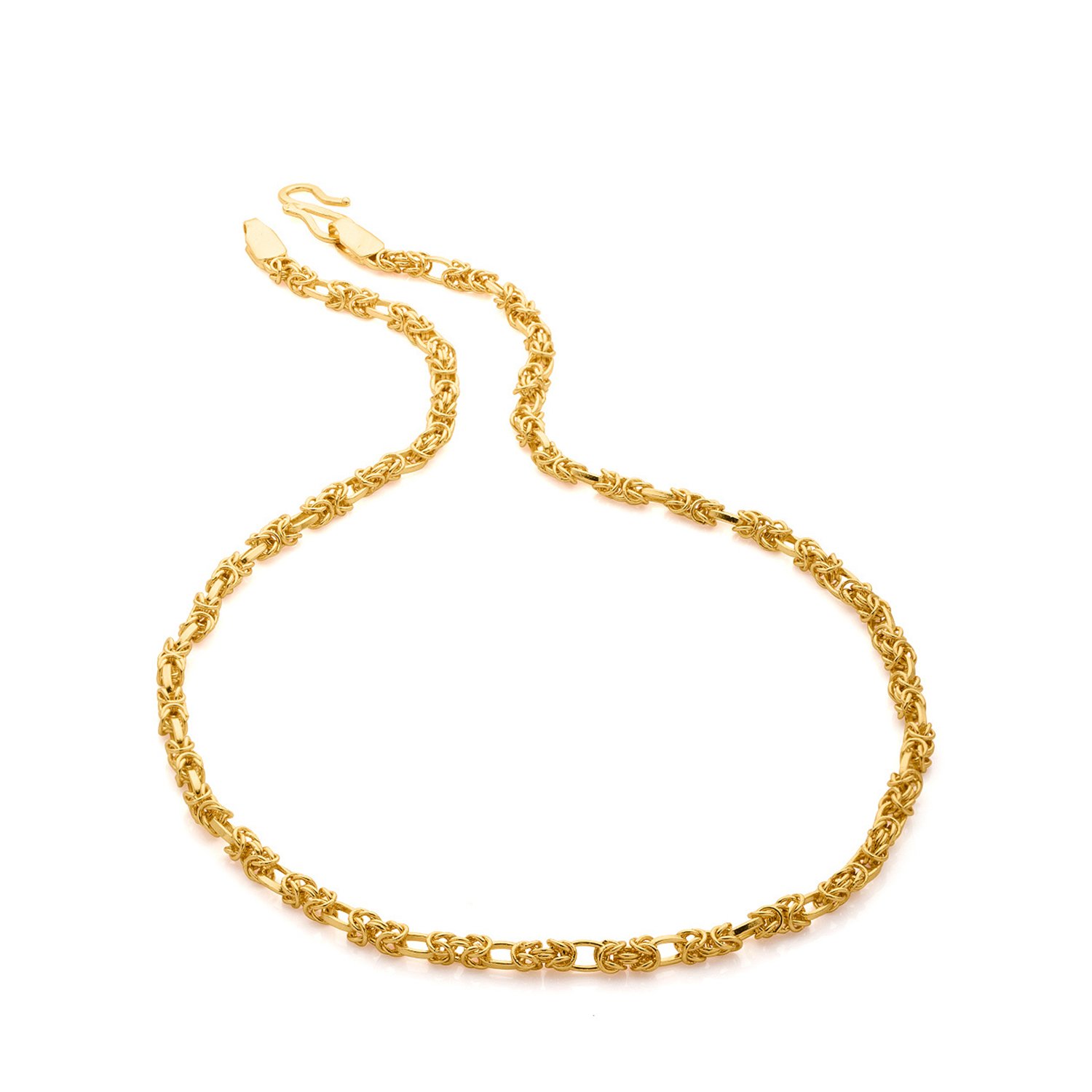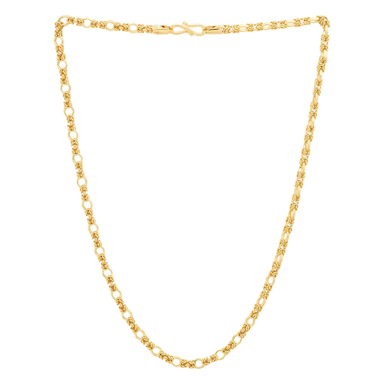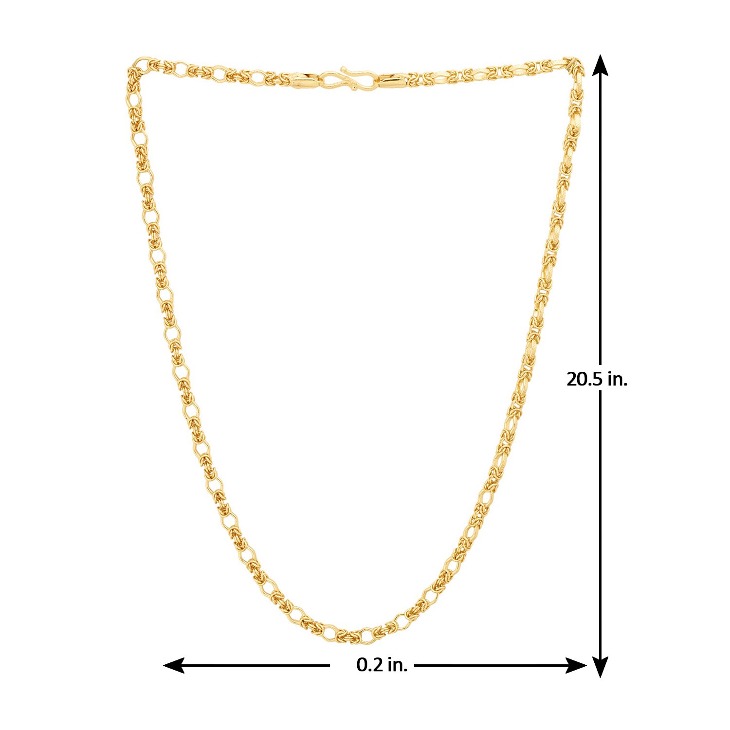 Fashioned into a stunning twisted Singapore link design, this classic chain is a true eye-catching stunner. A tough brass construction meets striking yellow gold plating in this rugged, durable chain, which will make a versatile, comfortable and worthy addition to your collection of accessories. To make your accessories last longer avoid harsh chemicals and moisture. Keep dry, clean with dry cloth and wear with panache. "From the house of Voylla , India ‚ largest fashion jewelry brand comes dare, a line of handcrafted accessories for the modern India n man. |