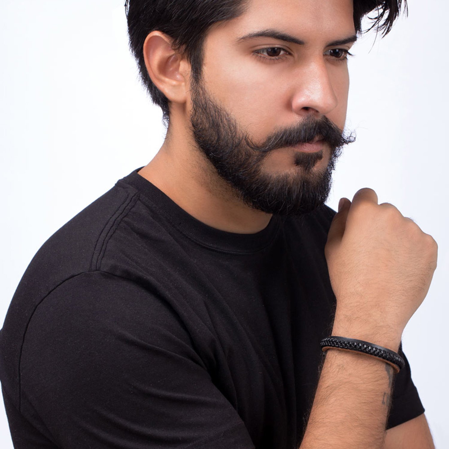 The accessory, get the dashing look by wearing this black braided leather bracelet from cool stacked. How to wear it, pair it with a beige colored trousers with a white polo t-shirt and sneaker shoes. Own the part, simple accessory to match your weekend mood. To make your accessories last longer avoid harsh chemicals and moisture. Keep dry, clean with dry cloth and wear with panache. From the dare by Voylla , India ‚ largest fashion jewelry brand comes dare, a line of handcrafted accessories for the modern India n man. |