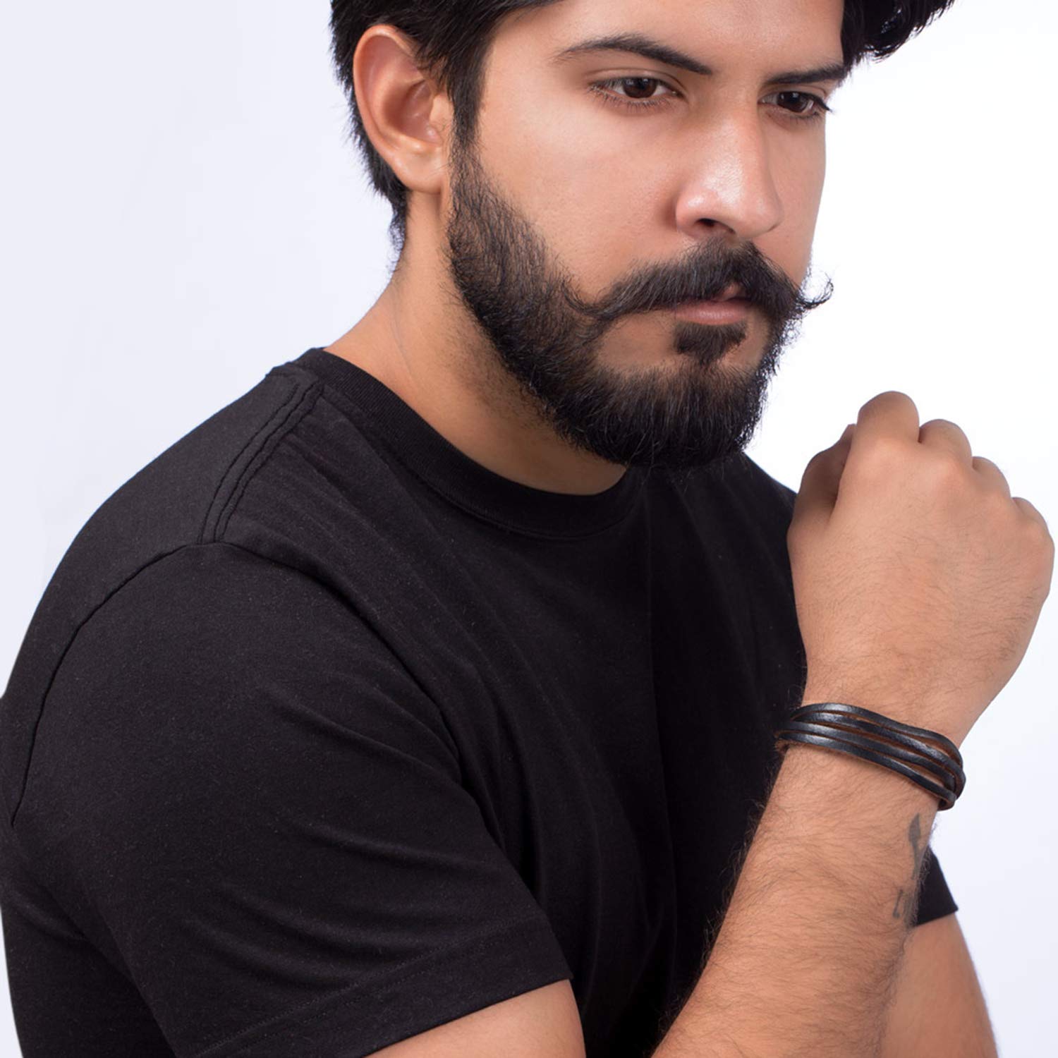 The accessory, cool stacked's leather bracelet to raise the style quotient of your looks. How to wear it, pair it with your casual attires. Own the part, perfect for everyday wear. To make your accessories last longer avoid harsh chemicals and moisture. Keep dry, clean with dry cloth and wear with panache. "From the dare by Voylla , India ‚ largest fashion jewelry brand comes dare, a line of handcrafted accessories for the modern India n man. |
