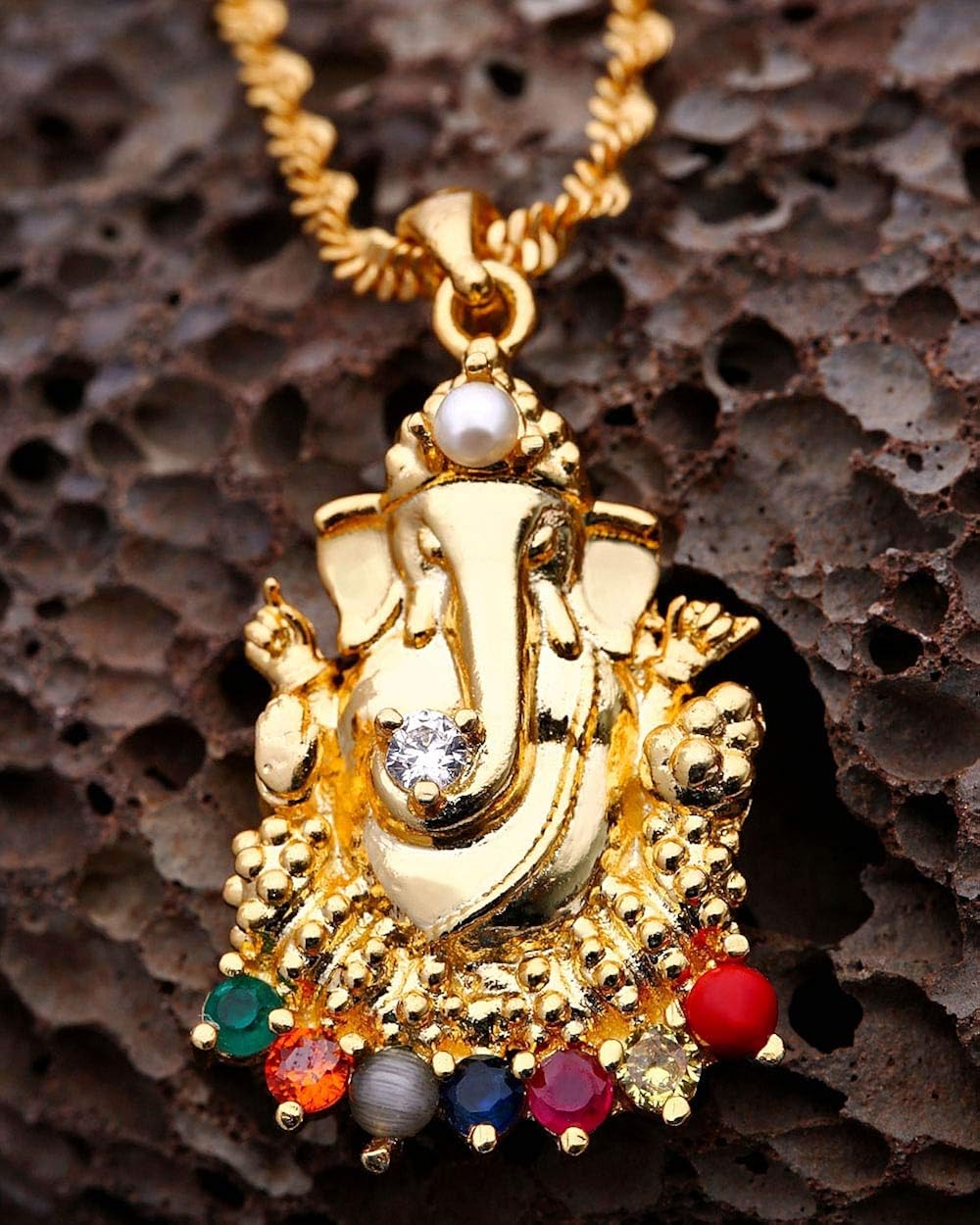 The accessory: this navratan ganesha pendant with colourful stones and in yellow gold plating is simply impressive. how to wear it: it goes well with both casual and formal outfits. own the part: wear it for adding a special charm to your personality every other day. to make your accessories last longer avoid harsh chemicals and moisture. keep dry, clean with dry cloth and wear with panache. "from the dare by voylla, india's largest fashion jewelry brand comes dare, a line of handcrafted accessories for the modern indian. man. |