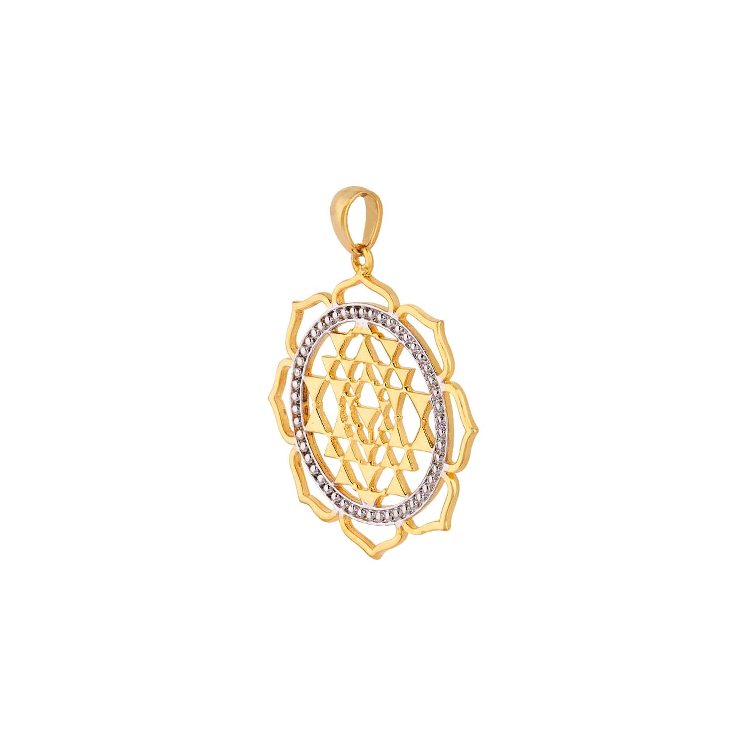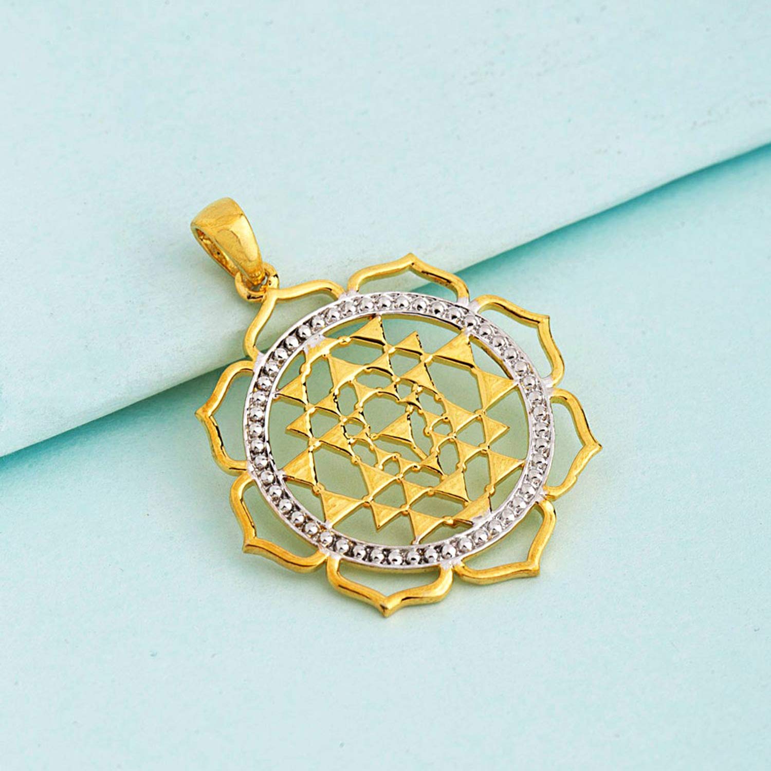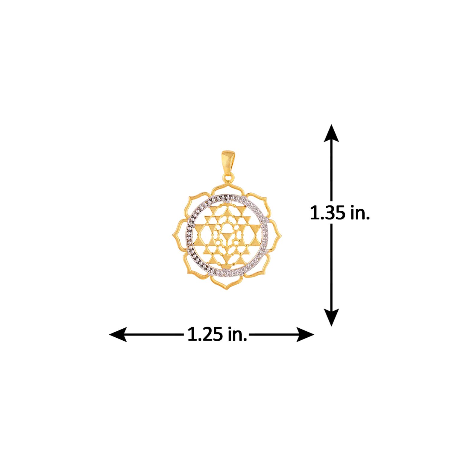 Lotus and triangles pendant with gemstones. yellow gold plated and made from brass. good for casual wear. to make your accessories last longer avoid harsh chemicals and moisture. keep dry, clean with dry cloth and wear with panache. "india's largest fashion jewelry brand dare, comes from the house of voylla as a limited edition of handcrafted accessories for the modern indian men. |