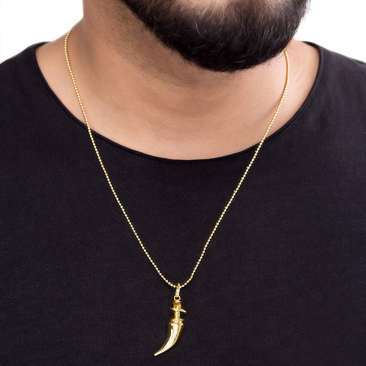 The Accessory: This gold-plated shivalinga and elephant tusk pendant is from our Shiv Rudra collection.How to Wear It: Team the pendant with your religious outfits.Own The Part: This pendant is ideal wear for holy poojas.To make your accessories last longer avoid harsh chemicals and moisture. Keep dry, clean with dry cloth and wear with panache."From the Dare by Voylla, India's largest fashion jewelry brand comes DARE, a line of handcrafted accessories for the modern Indian. man. |