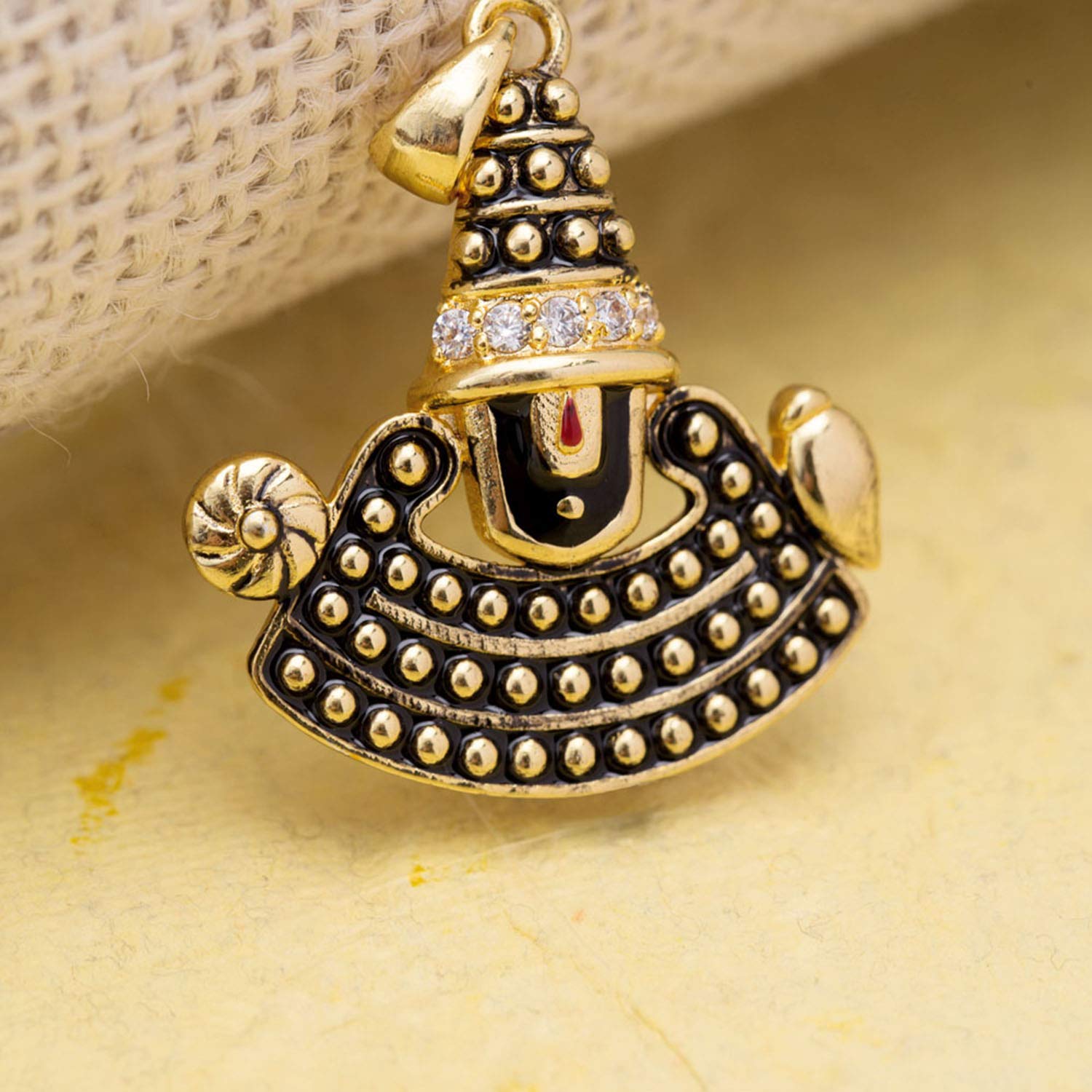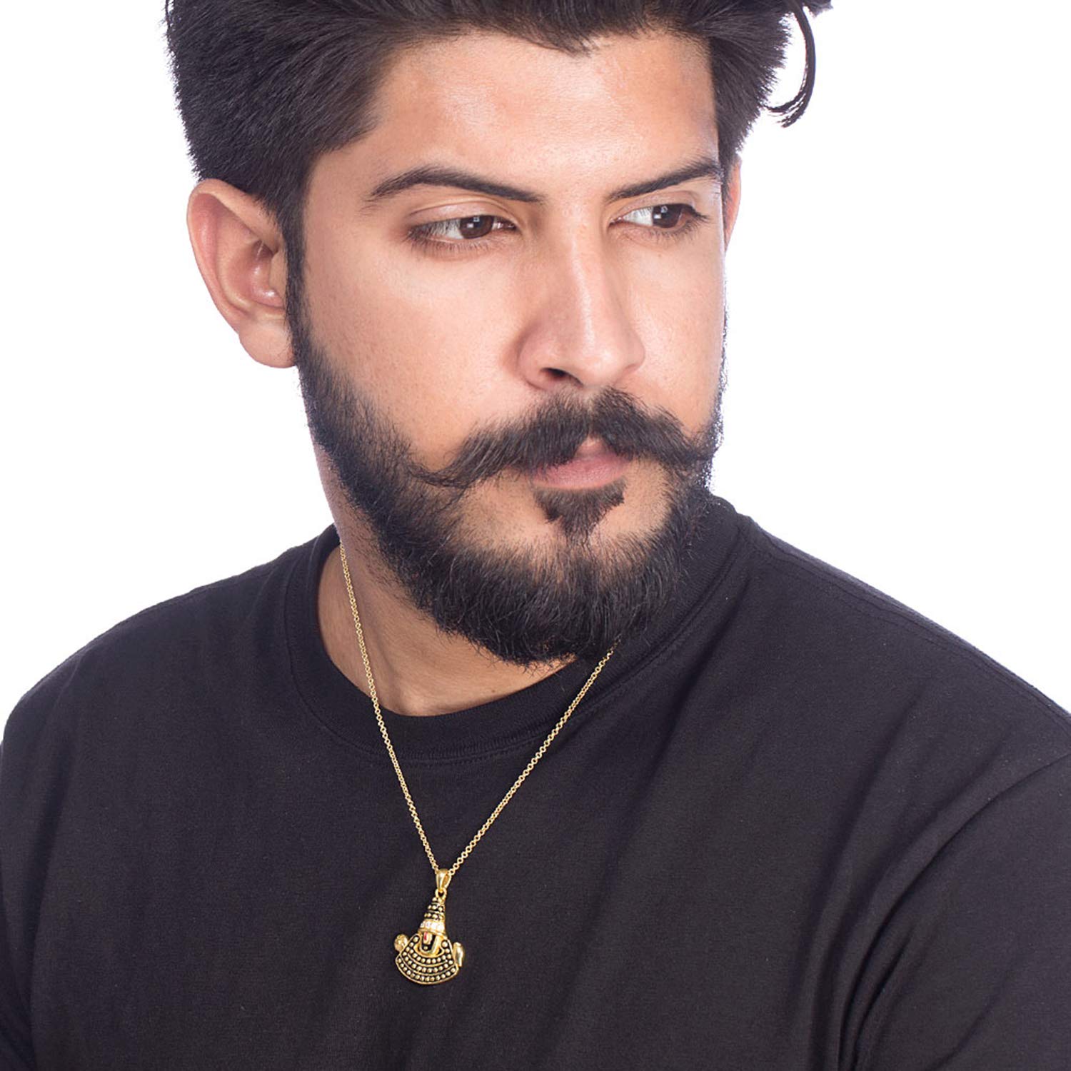 The Accessory: A religious Tirupati Balaji pendant with an attractive black enamel from our Spiritual Saga collection.How to Wear it: Throw the pendant on with a Kurta and dhoti for a religious look.Own the Part: An auspicious occasion with the family members.To make your accessories last longer avoid harsh chemicals and moisture. Keep dry, clean with dry cloth and wear with panache."From the Dare by Voylla, India's largest fashion jewelry brand comes DARE, a line of handcrafted accessories for the modern Indian man. |