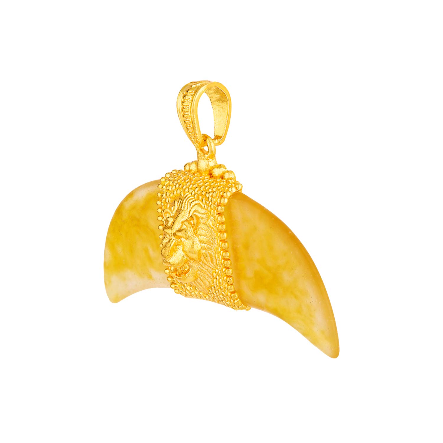 Brass lion's claw shaped pendant. Yellow gold plated and good match for ethnic and Indo-Western outfits.To make your accessories last longer avoid harsh chemicals and moisture. Keep dry, clean with dry cloth and wear with panache. "India's largest fashion jewelry brand DARE, comes from the House of Voylla as a limited edition of handcrafted accessories for the modern Indian men. |