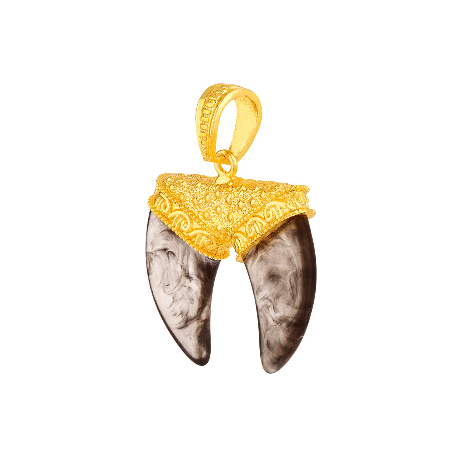 Brass pendant featuring two lion's claws motifs. Yellow gold plated. Pair with casual and even party attire.To make your accessories last longer avoid harsh chemicals and moisture. Keep dry, clean with dry cloth and wear with panache. "India's largest fashion jewelry brand DARE, comes from the House of Voylla as a limited edition of handcrafted accessories for the modern Indian men. |
