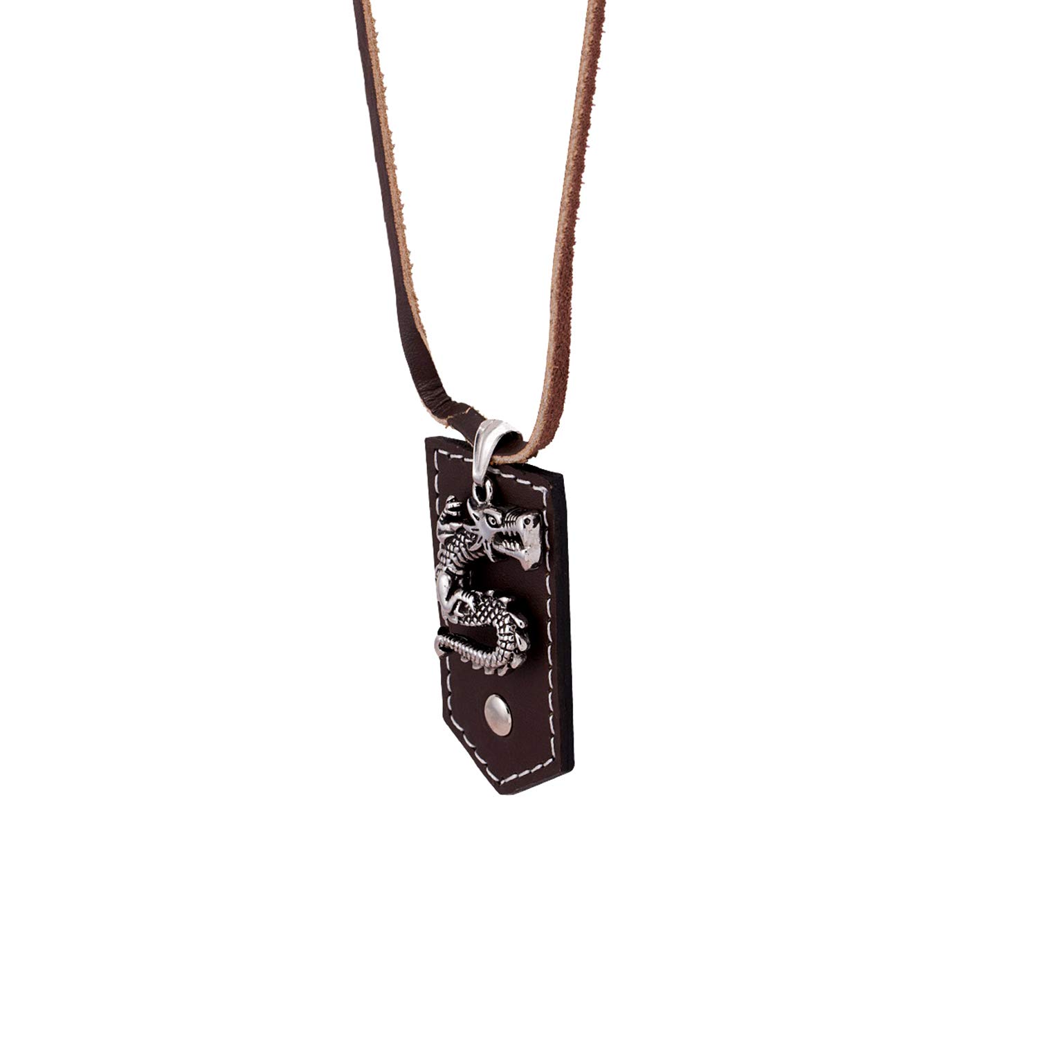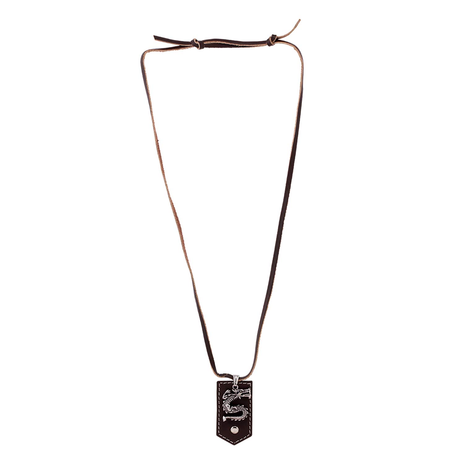 If you want to look powerful, then look no further then this silver oxidized dragon designer pendant with leather chain. with perfect alloy craftsmanship, this jewel piece is a must-have in every men's accessory collection. to make your accessories last longer avoid harsh chemicals and moisture. keep dry, clean with dry cloth and wear with panache. "india's largest fashion jewelry brand dare, comes from the house of voylla as a limited edition of handcrafted accessories for the modern indian men. |