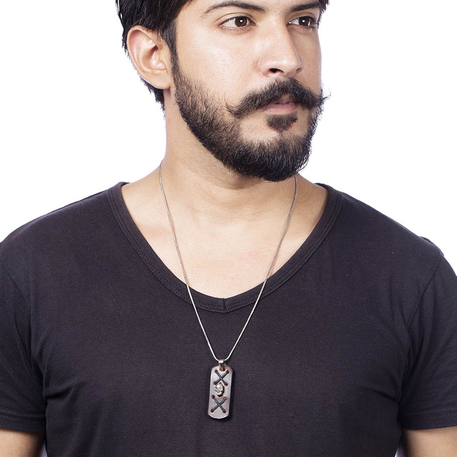 Designed to be a definite head turner, this rugged pendant features an alloy skull on a leather-look surface and black crosses thread work. Oxidised silver plating gives a rugged edge to the stunning pendant, which is perfect for night creatures and stylish party animals. To make your accessories last longer avoid harsh chemicals and moisture. Keep dry, clean with dry cloth and wear with panache."From the House of Voylla, India's largest fashion jewelry brand comes DARE, a line of handcrafted accessories for the modern Indian man. |