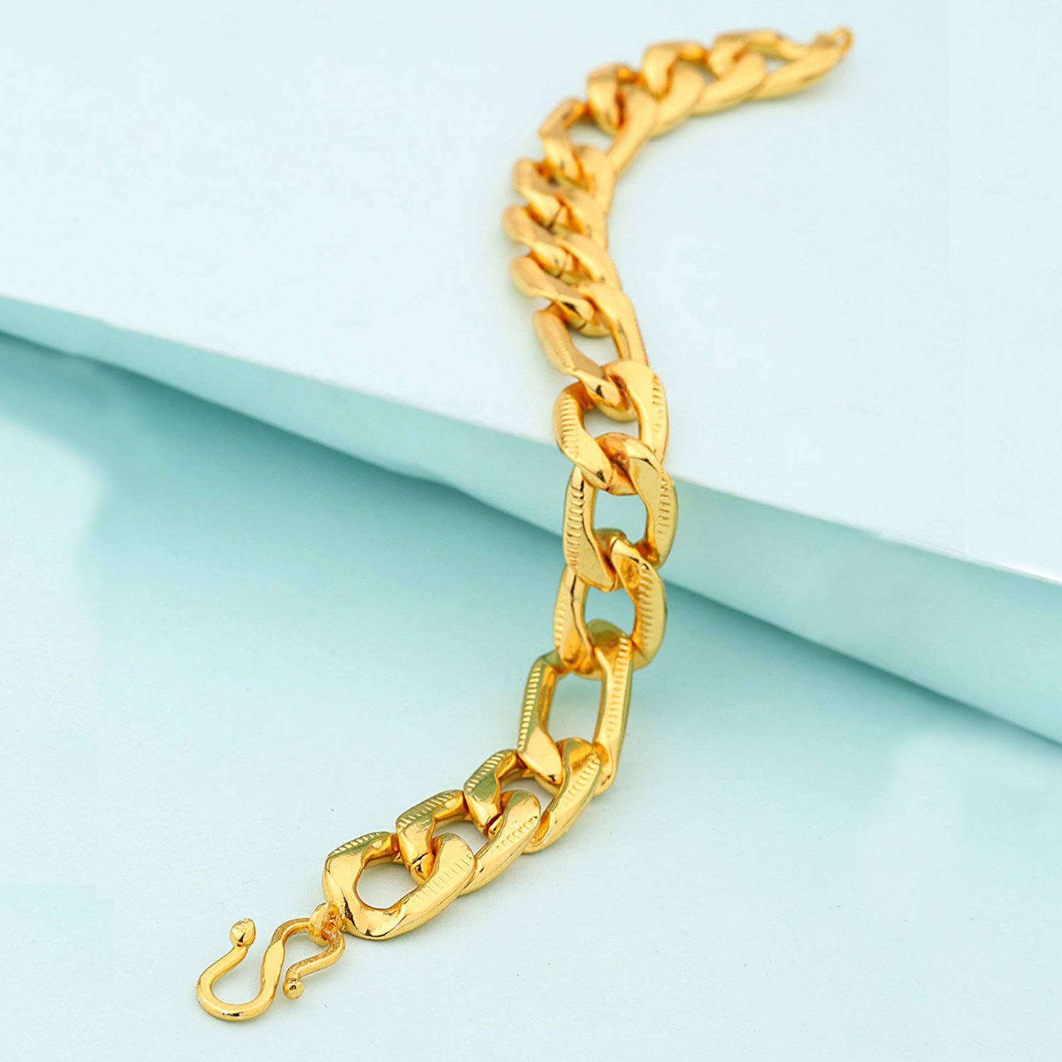 Look tough and sexy by wearing this golden colored bracelet. Made from brass, this men's bracelet featured link design that make it look edgier and more rustic. You can wear this bracelet with a leather jacket and jeans to look tough and smart. This piece of jewelry comes with the Voylla assurance of quality and durability. Caring for your fashion jewelry: We, at Voylla, take care of every piece of jewelry so that you don't spend hours caring for them. But do remember, fashion jewelry lasts longer when kept dry and free of chemicals. Follow this simple rule: Your jewelry should be the last thing you put on and the first thing you take off. |