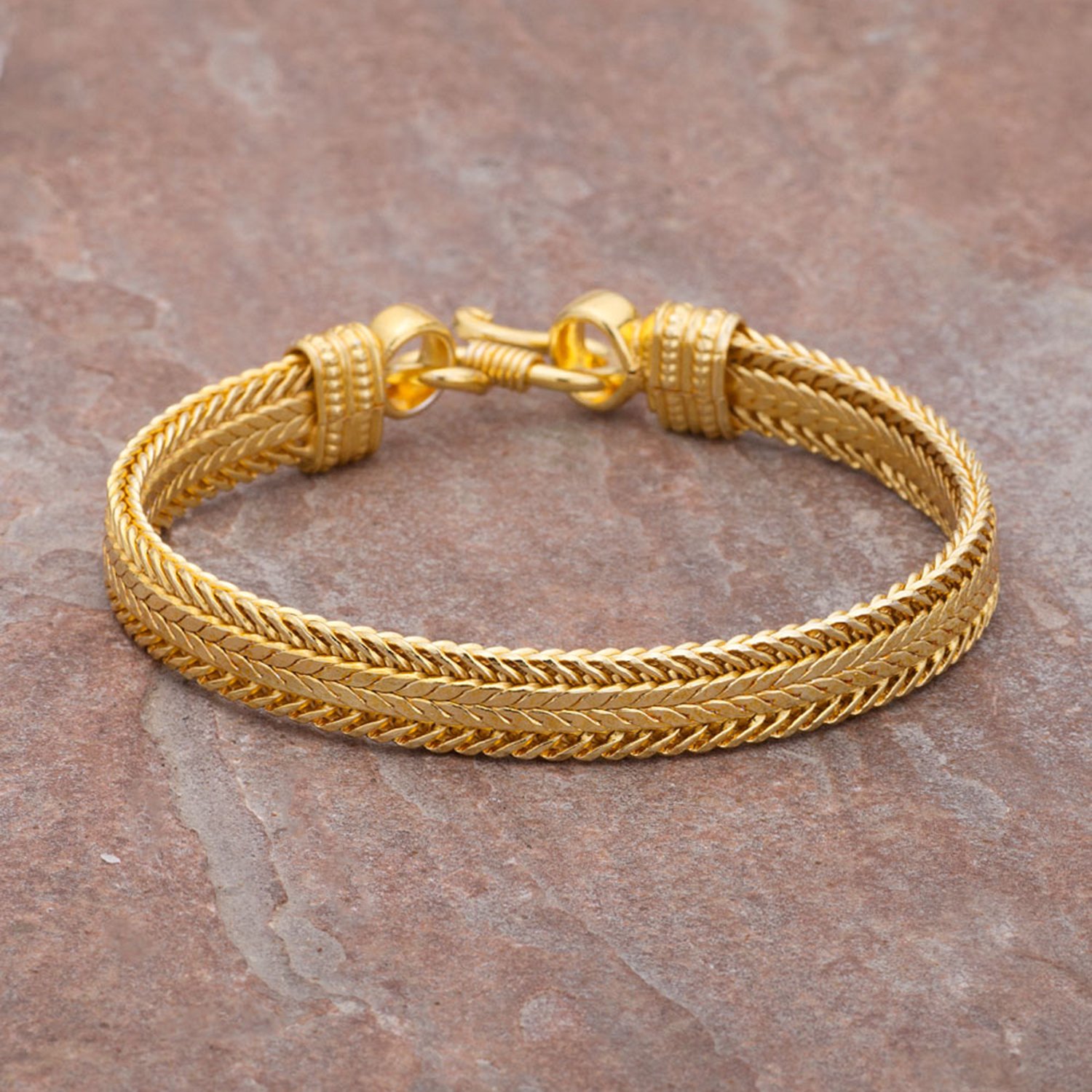 Add punch to your style by wearing this classy bracelet from Dare by Voylla. Fashioned out of brass, this stunning piece has been plated with yellow gold along with perfect finish. This is the perfect accessory to match with a plain kurta or just about any Indian ensemble. To make your accessories last longer avoid harsh chemicals and moisture. Keep dry, clean with dry cloth and wear with panache. "From the House of Voylla, India's largest fashion jewelry brand comes DARE, a line of handcrafted accessories for the modern Indian man. |