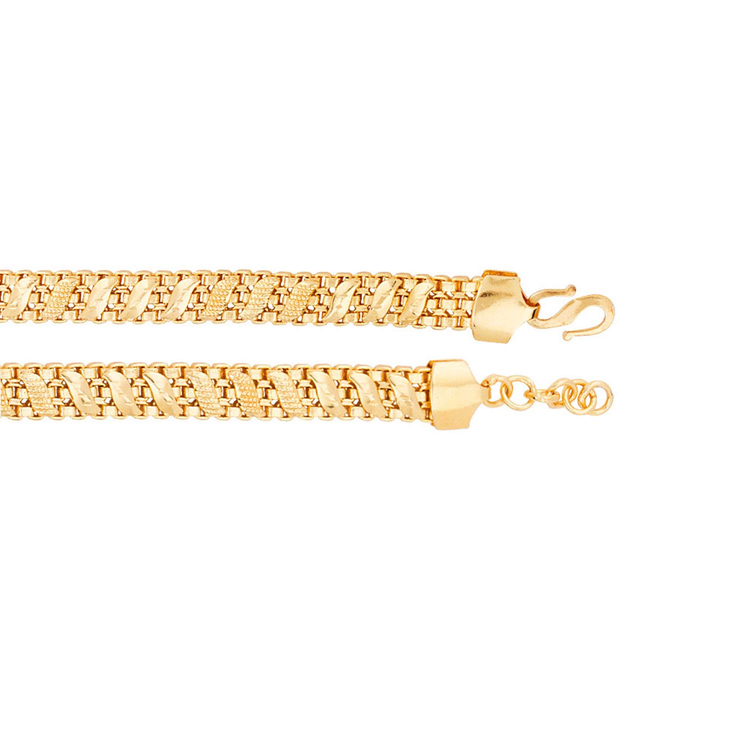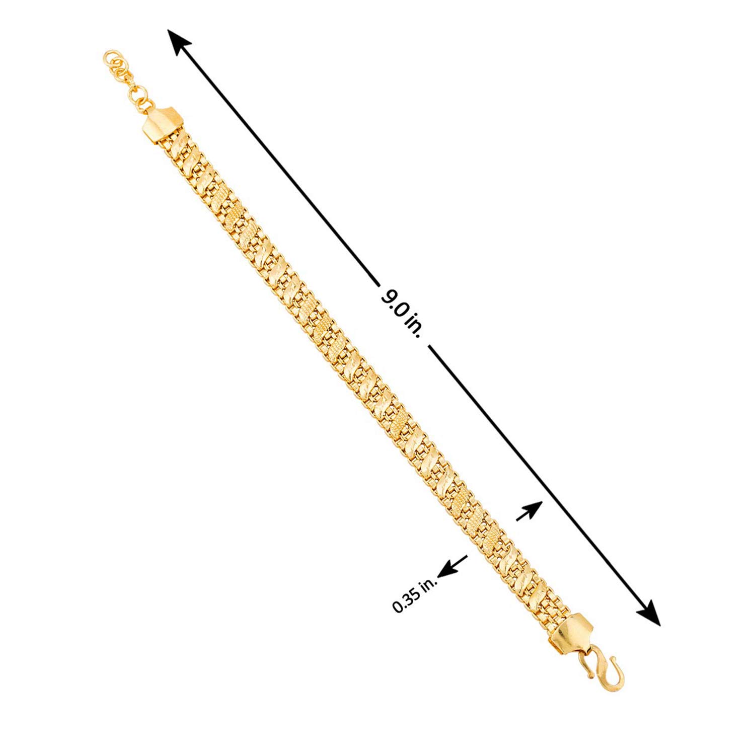 Brass bracelet with hook and eye closure and yellow gold plating. Lightweight and comfortable. Good match for formal attire. To make your accessories last longer avoid harsh chemicals and moisture. Keep dry, clean with dry cloth and wear with panache. "From the Dare by Voylla, India's largest fashion jewelry brand comes DARE, a line of handcrafted accessories for the modern Indian man. |