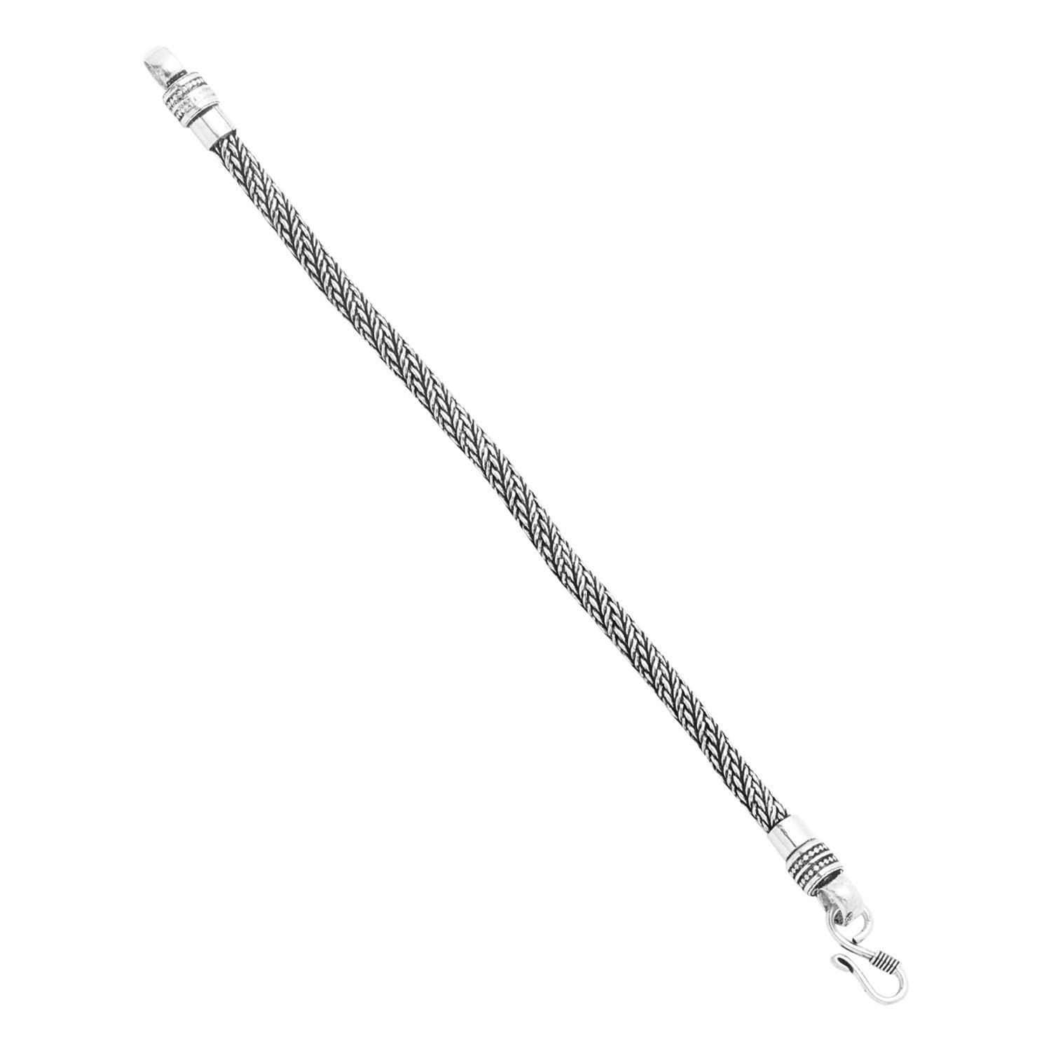 Look macho with this brightly polished silver oxidised bracelet featuring a classic textured smart look. This piece of jewelry comes with the Voylla assurance of quality and durability.Caring for your fashion jewelry: We, at Voylla, take care of every piece of jewelry so that you don't spend hours caring for them. But do remember, fashion jewelry lasts longer when kept dry and free of chemicals. Follow this simple rule: Your jewelry should be the last thing you put on and the first thing you take off. |