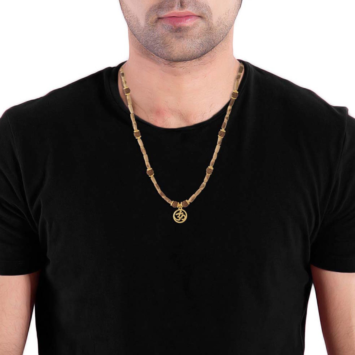 Description: We bring to you a wide range of products in kundan, traditional, gold plated jewellery, American Diamond jewellery and other Jewelry accessories. Adorn you jewellery box with Voylla's designer Jewellery and shine everytime you wear them.Go classy with contemporaneous vogue! Here comes this divine Pendent with Rudraksha and Tulsi beaded chain. Featuring OM design Pendent in gold plating. Club this piece with any of your favorite outfits. This piece of jewelry comes with the Voylla assurance of quality and durability. Caring for your fashion jewelry: We, at Voylla, take care of every piece of jewelry so that you don't spend hours caring for them. But do remember, fashion jewelry lasts longer when kept dry and free of chemicals. Follow this simple rule: Your jewelry should be the last thing you put on and the first thing you take off. |