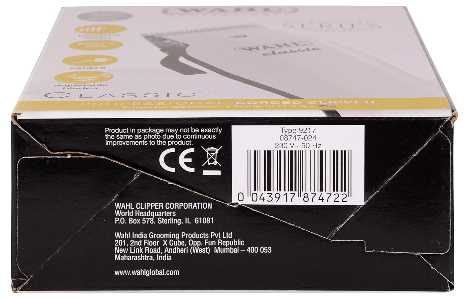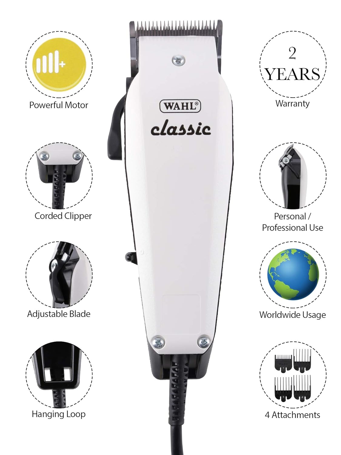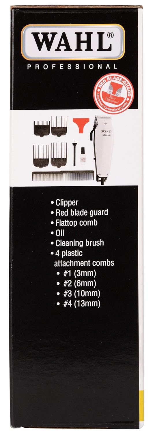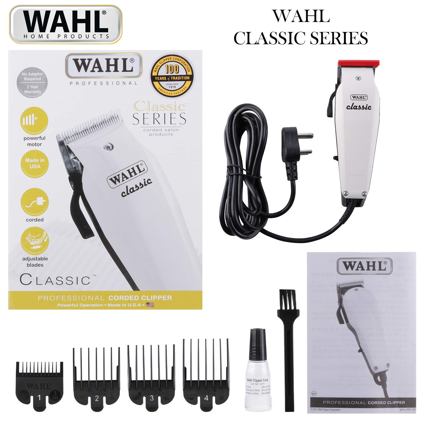 Wahl India Presents CLASSIC SERIES CLIPPER 08747-024, Durable and sturdy construction, Includes clipper, red blade guard, flat top comb, oil, cleaning brush, 4 plastic attachment combs |