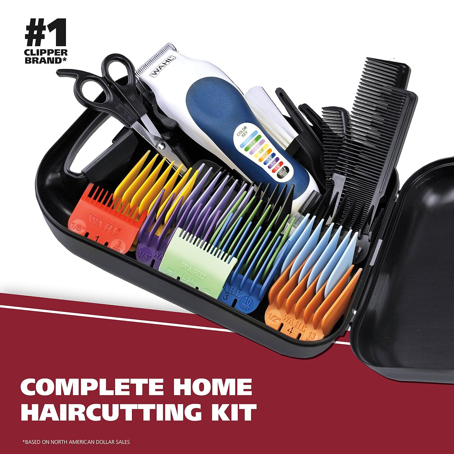 High-speed powerdrive motor cuts thick hair more smoothly permanently aligned high-carbon steel blades never need adjusting 11 color-coded guide combs for quick and easy reference includes 3 combs, scissors, 3 hair clips, barber's cape, neck duster made for use in USA electrical outlets only. |