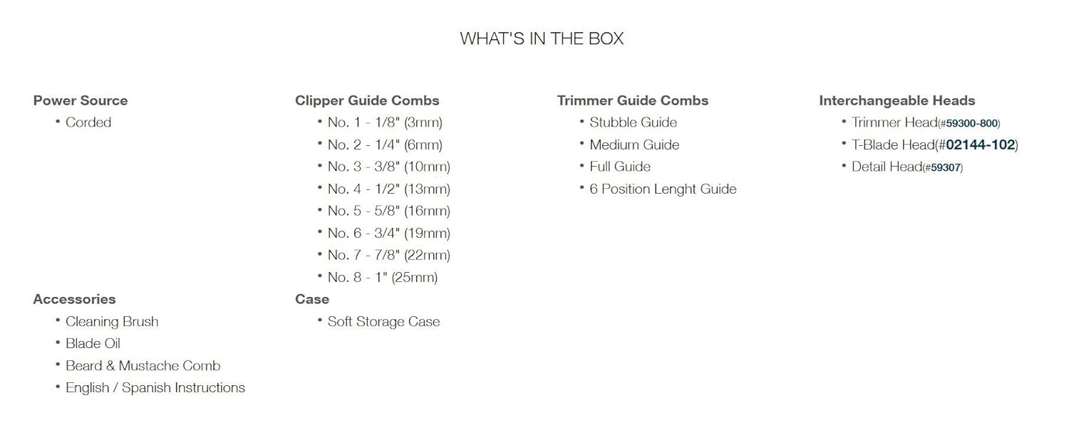 Hair clipper, trimmer and detailer 17 trimming lengths corded full power precision stainless steel blades stay sharp longer made for use in USA electrical outlets only. |