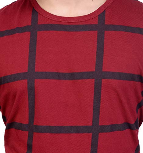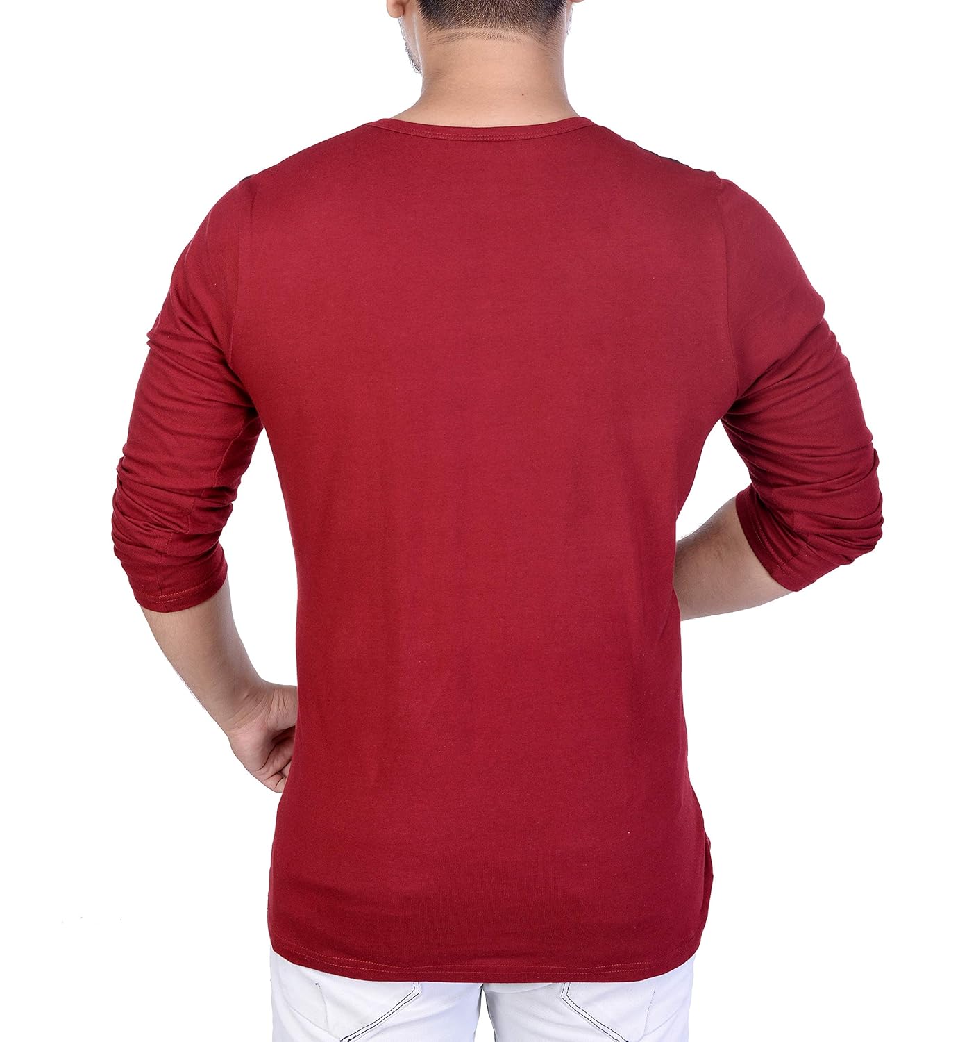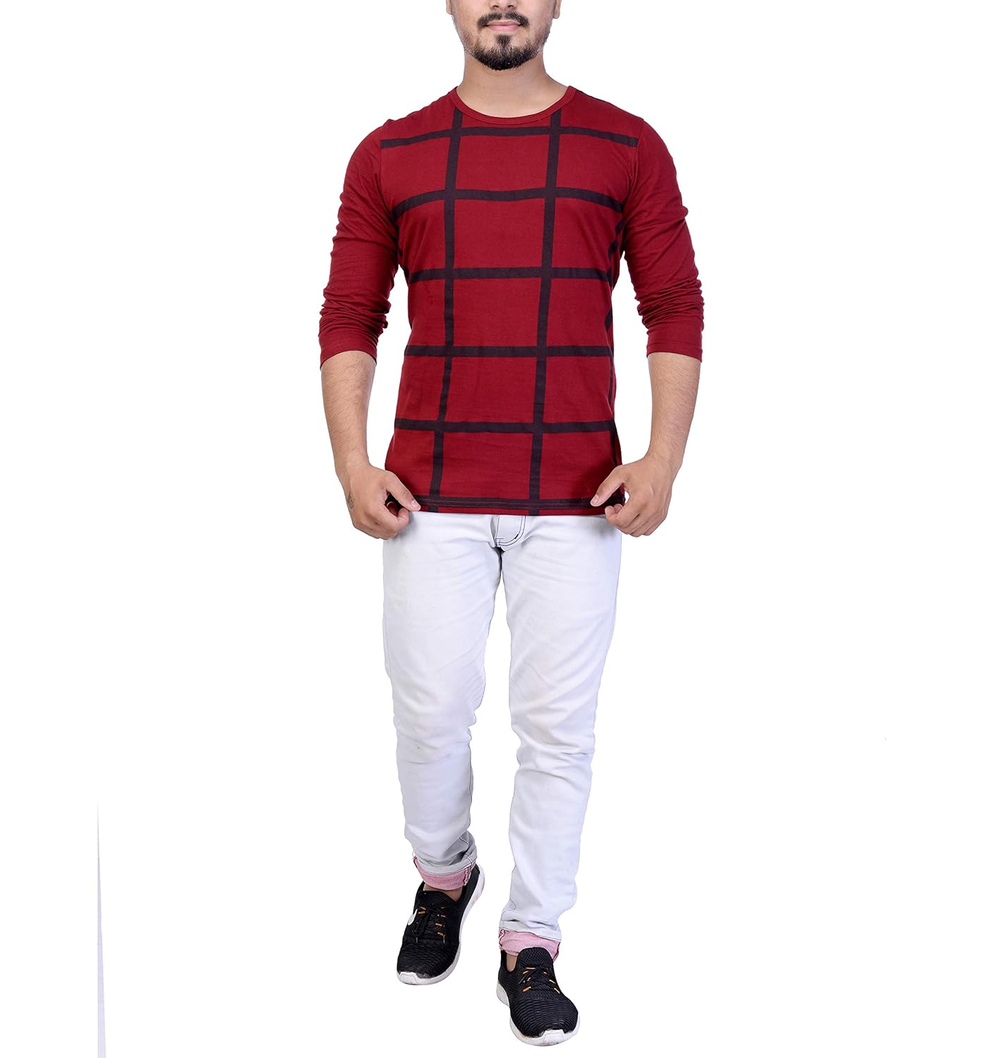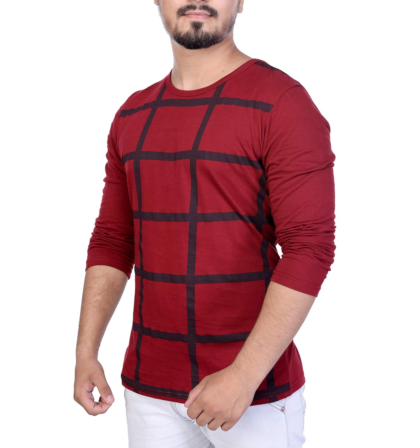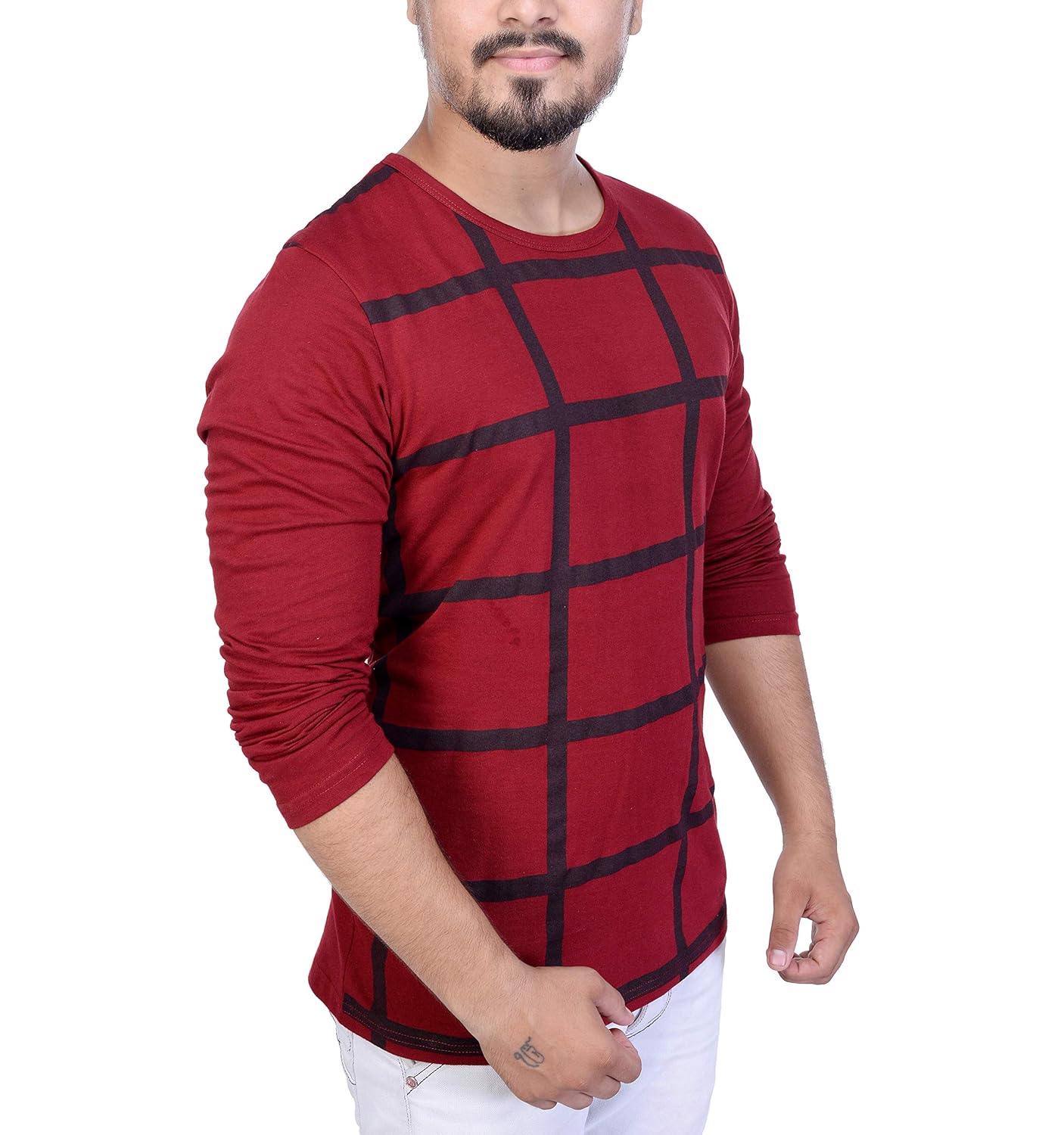 Weft Men's Cotton Printed Round Neck Full Sleeve Tshirt RED