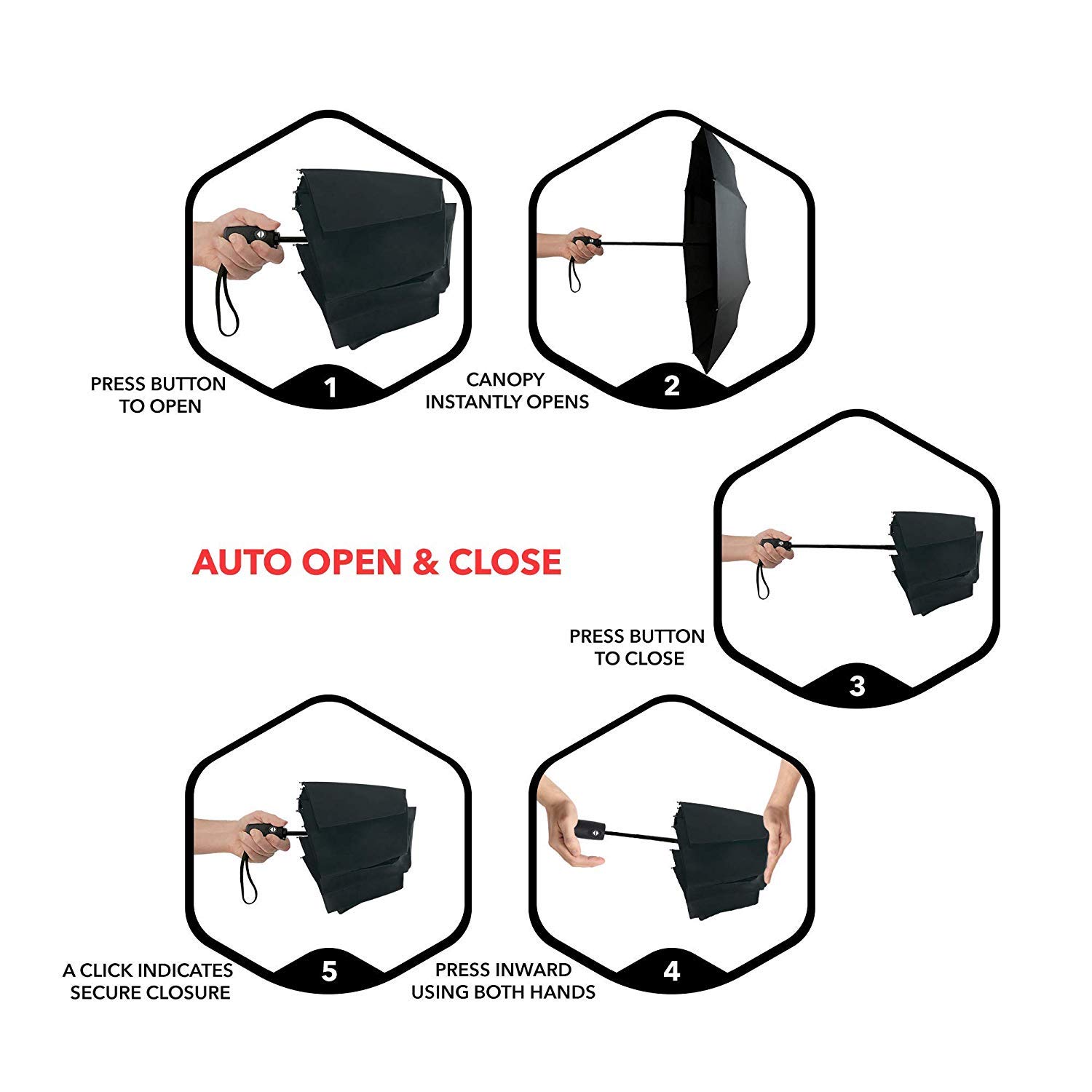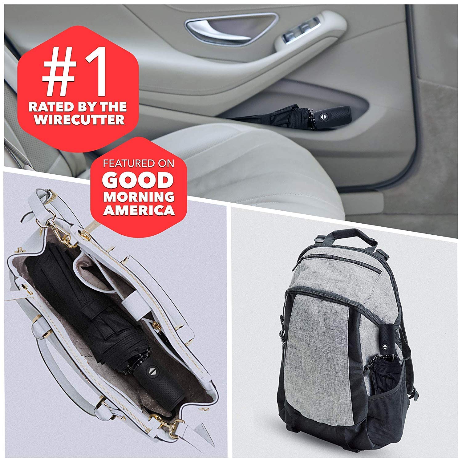 An umbrella that defies the logic of Mother Nature. 9 resin-reinforced fiberglass ribs. Teflon coated canopy. Dries instantly. Auto Open/Close. Super Portable. Length: 11.5", Weight 15 ounces. The Repel Travel Umbrella goes to extremes to keep you dry. |