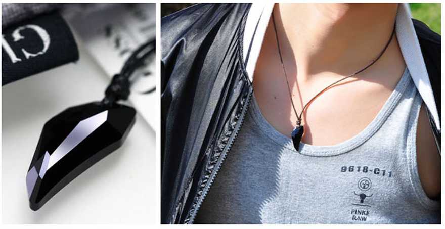 Sansar India Wolf Tooth Black Crystal Adjustable Black Dori Pendant Unisex Necklace for Men and Women |