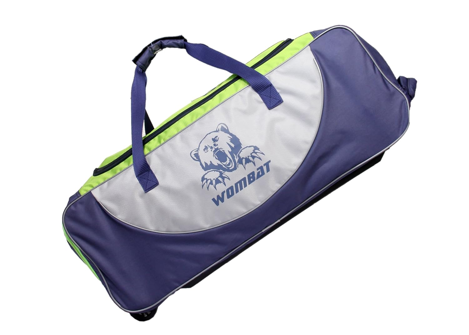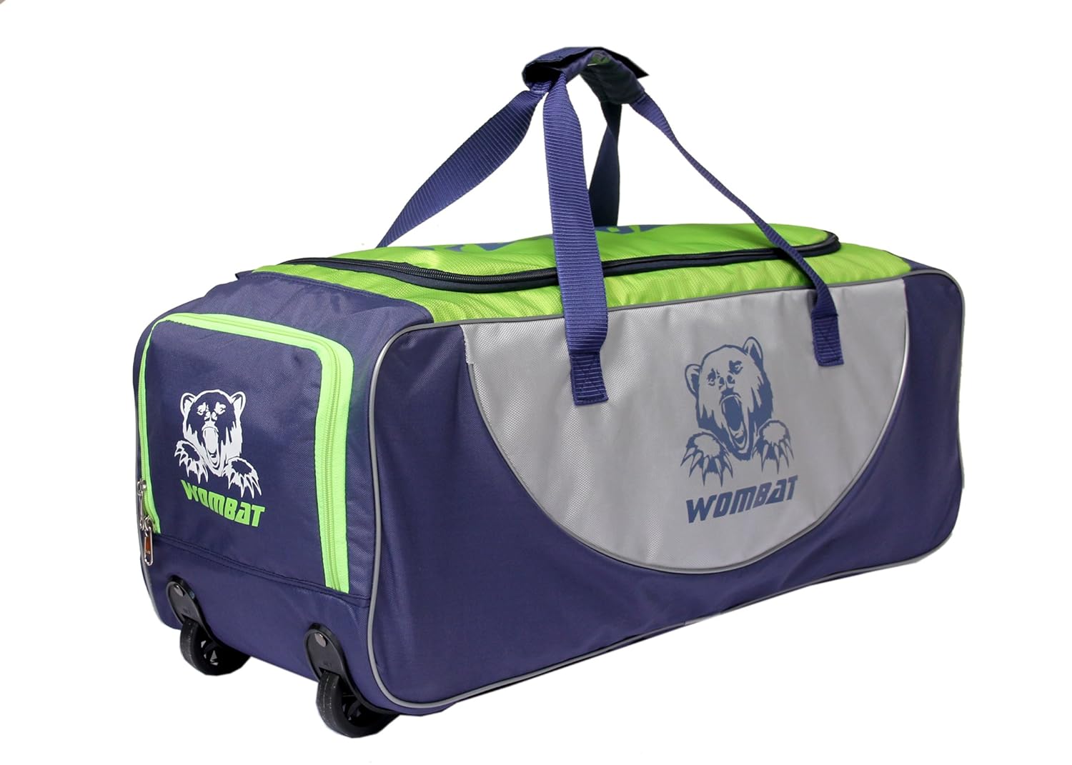 WOMBAT Polyester Blue Green Cricket KIT Bag with Wheel/Wheelie Cricket Bag Junior Wheelie Bag