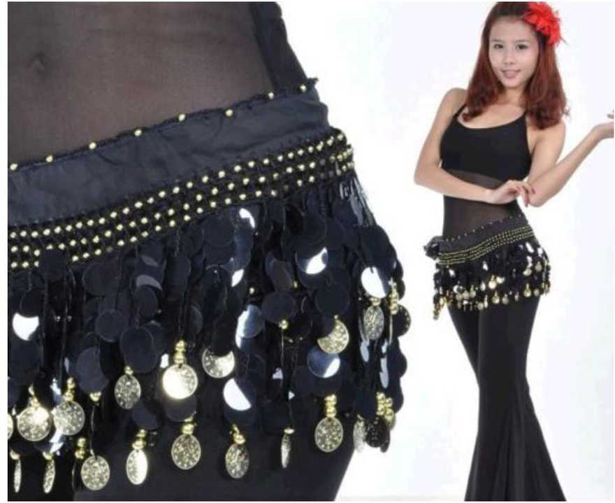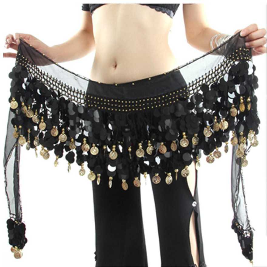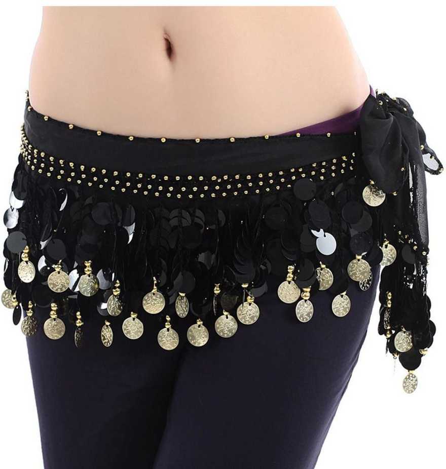 Women's Chiffon Belly Dance Hip Scarf Waistband Belt Skirt Single Colors Beads And Golded Coins 56 Black |