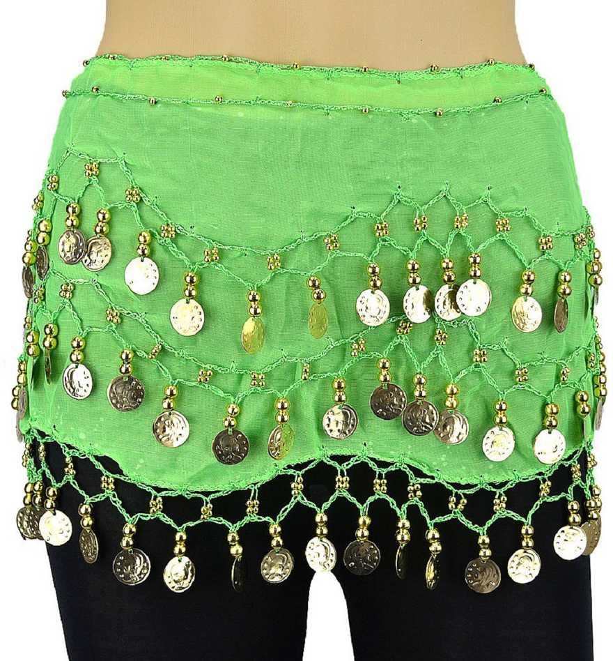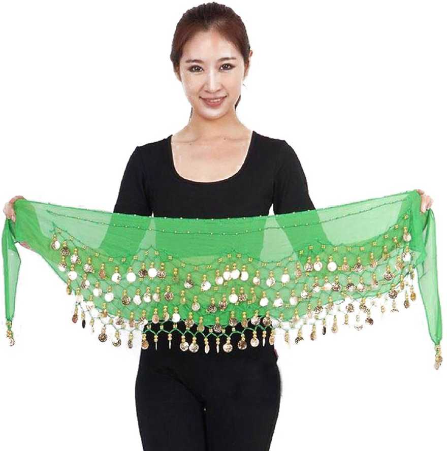 Women's Chiffon Belly Dance Hip Scarf Waistband Belt Skirt with128 Ringy Golden Coins Green |