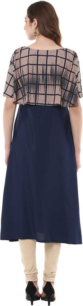 Boat Neck Sleeveless Solid Flared Kurta With Digital Printed Attached Cape |