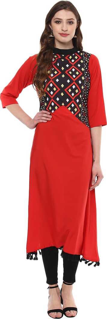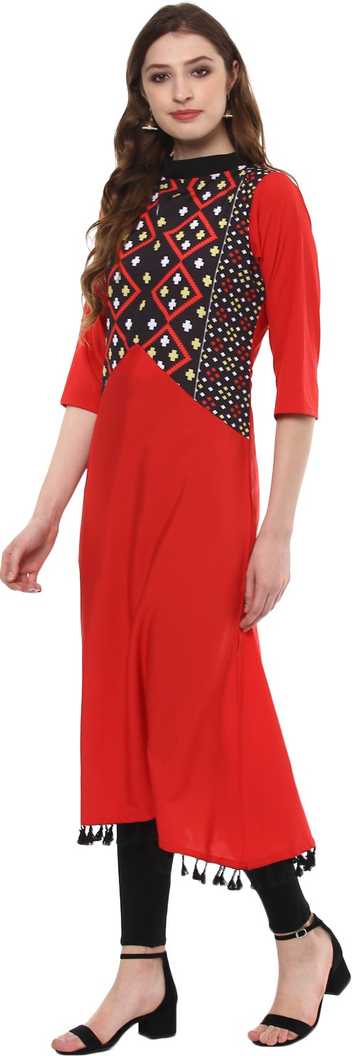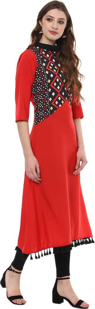 Stand Collar 3/4 Sleeve Digital Print Flared Kurta |