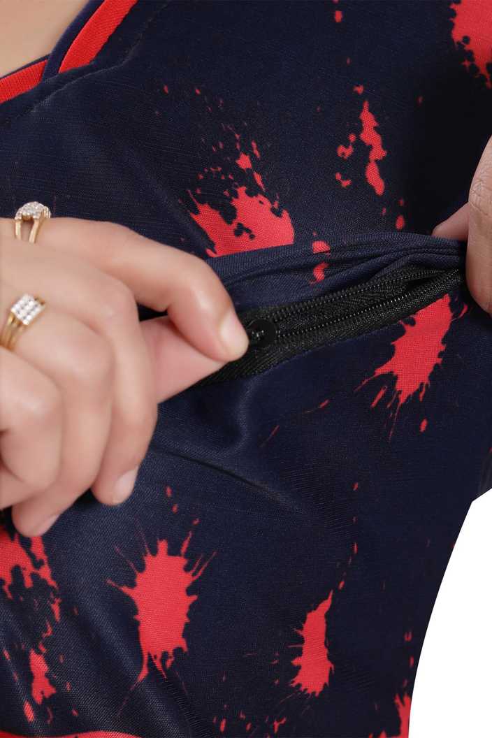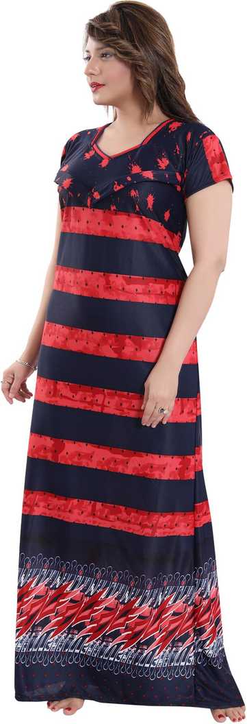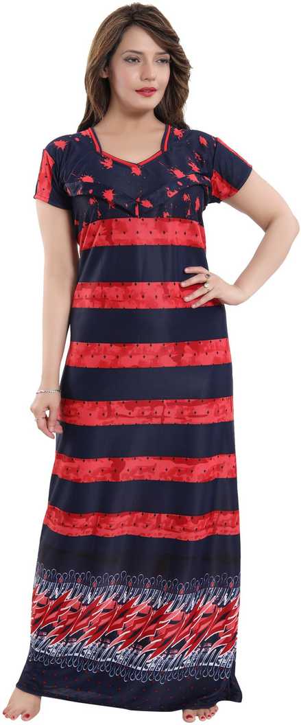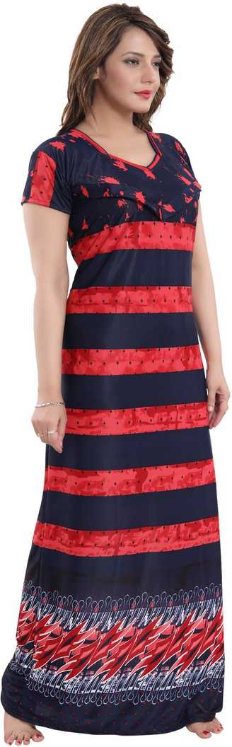 The nightgown has zip on both side for feeding purpose, pentagon neck & half sleeves. Size: Free (comfort fit to bust 32-38 inches) Length: Full (approx 55 inches) |