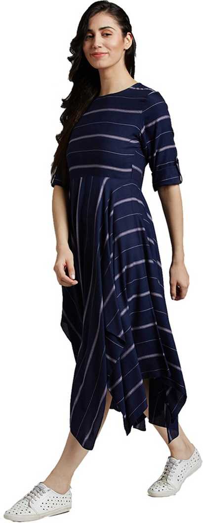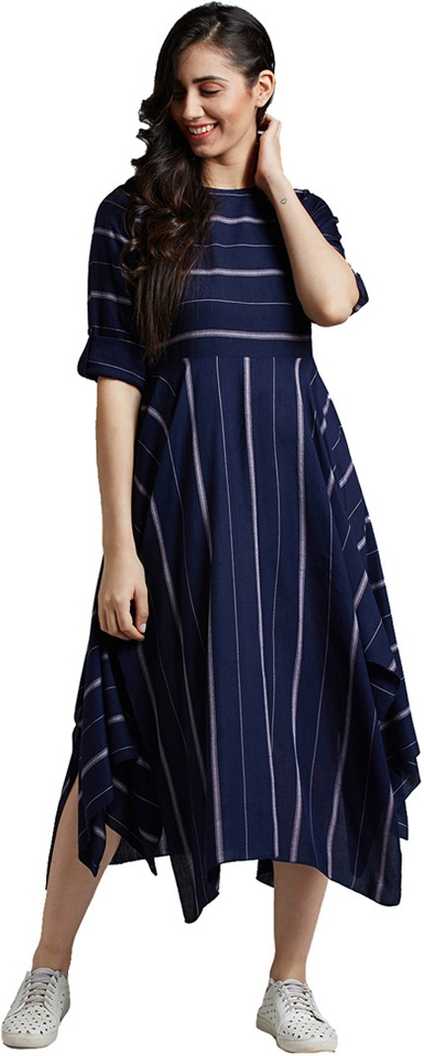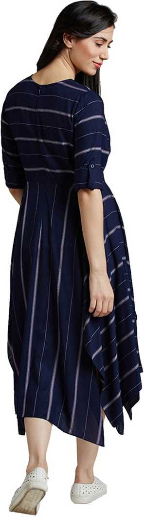 Other Details: Desi Fusion Women's Handloom Cotton Blue Stripes Dress