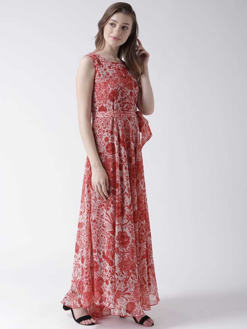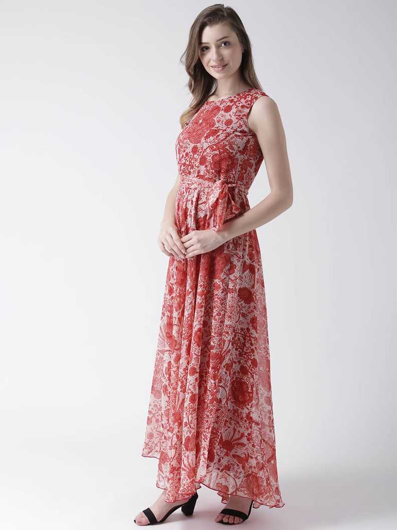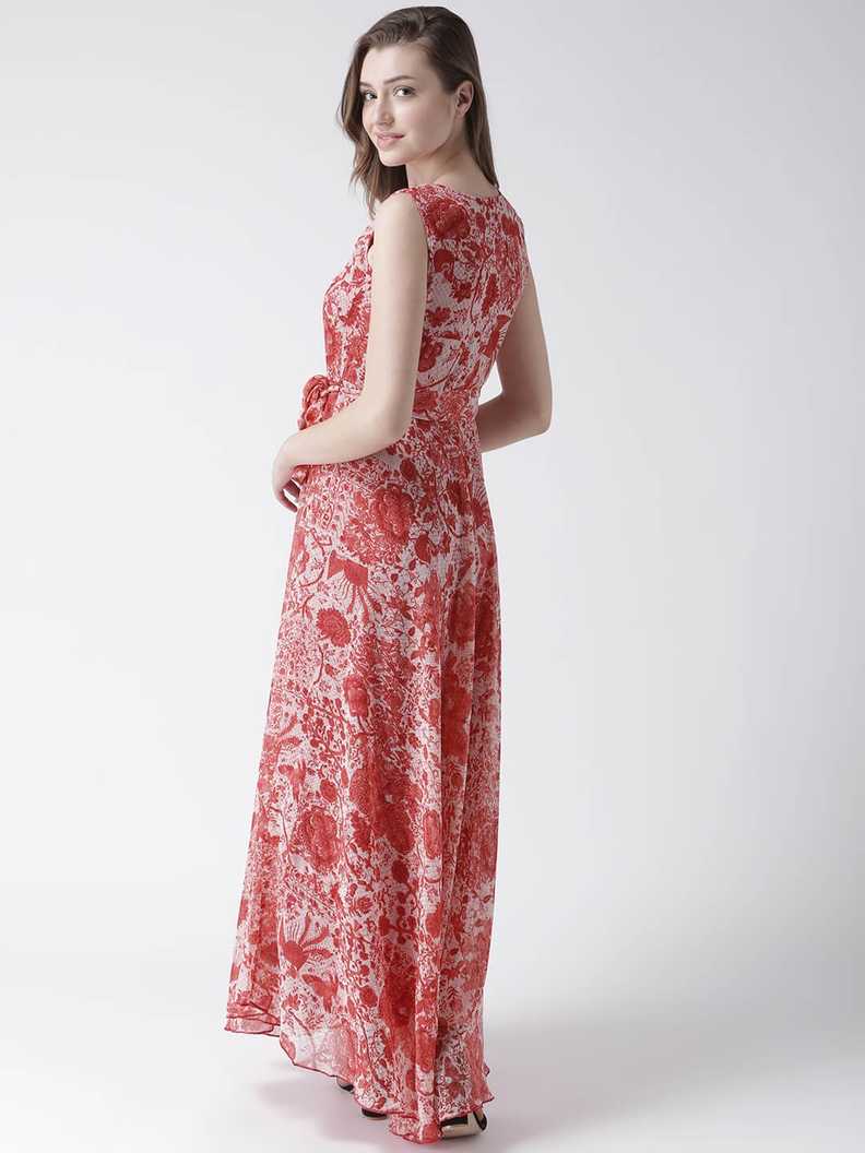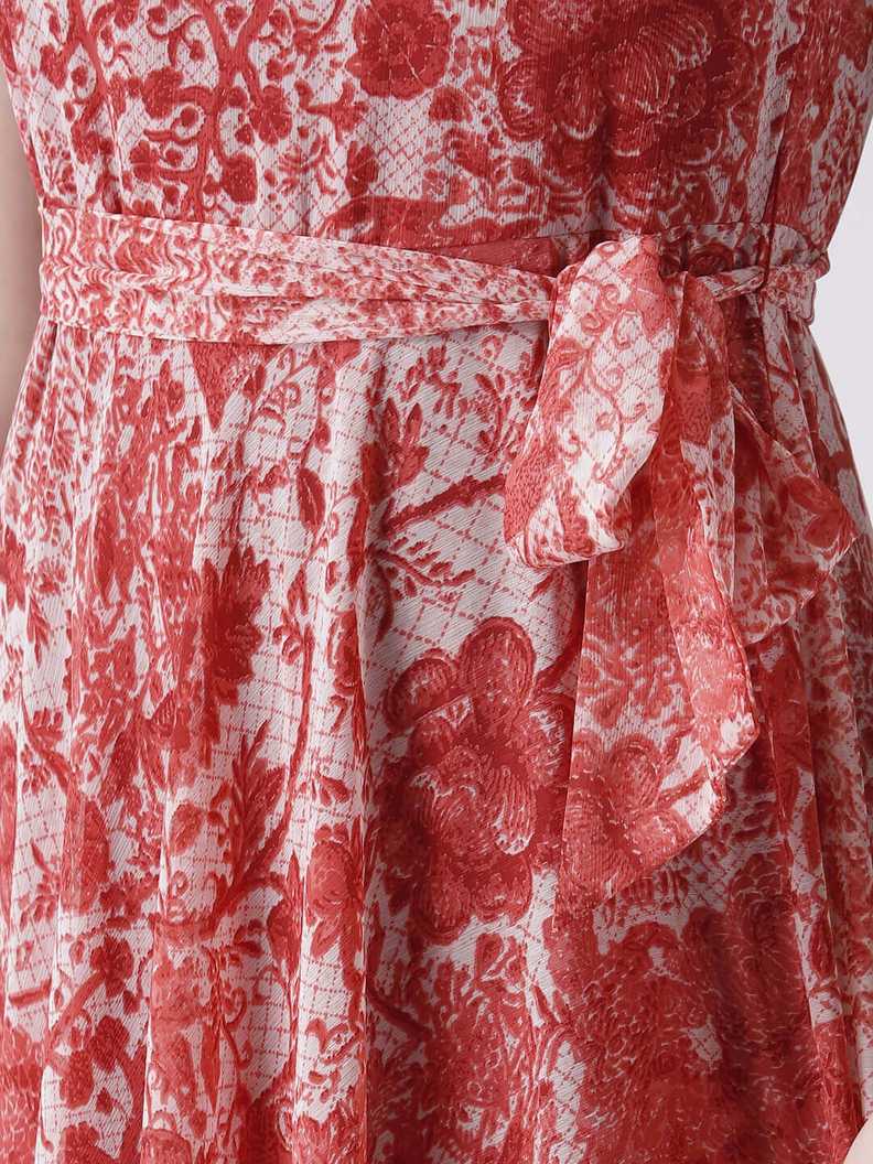 Other Details: MsFQ Women's Flared printed maxi dress with waist tie up