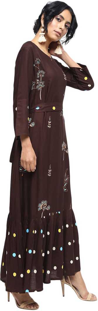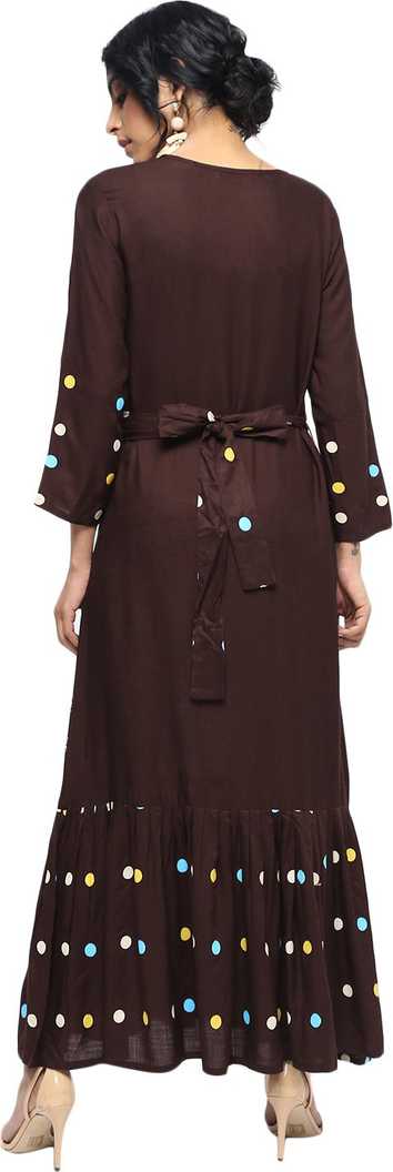 Kurti made of rayon material for a comfortable fit all day long., Sleeve Type - 3/4th Sleeves, Neck Type - Round neck, Item Length - Ankle Long, Pattern - Polka dot Print, Fit Type - Regular fit, Ideal for - Women, Occasion - Casual, Dailywear, Workwear, Style Name - Flared, Length - 50 Inch |